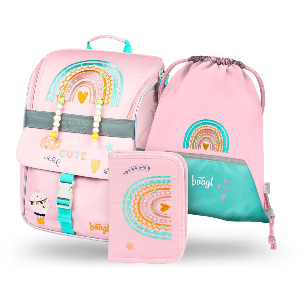 BAAGL 3 SET Zippy Duha růžový: aktovka, penál, sáček