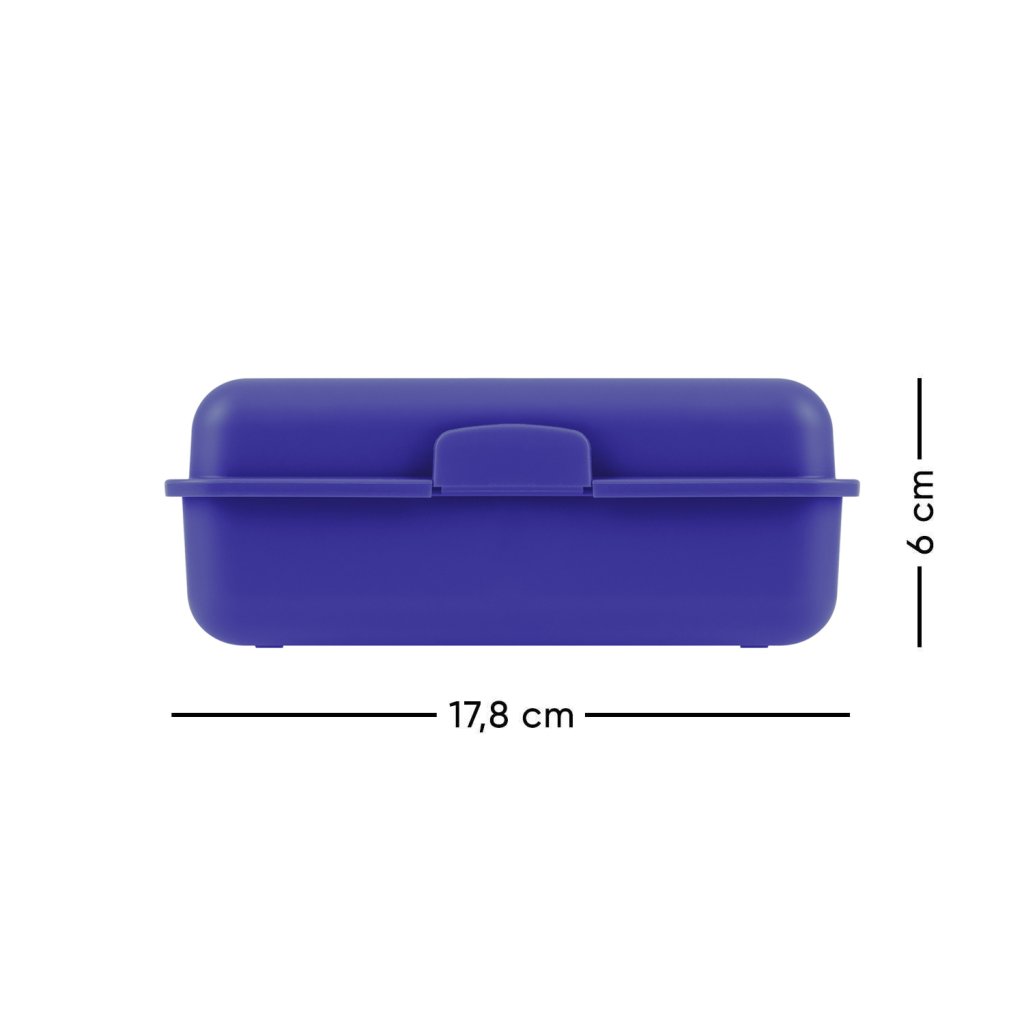 - Plastový box na občerstvenie v modrej farbe- Box má uzáver s jedným zámkom a deliacu priečku.