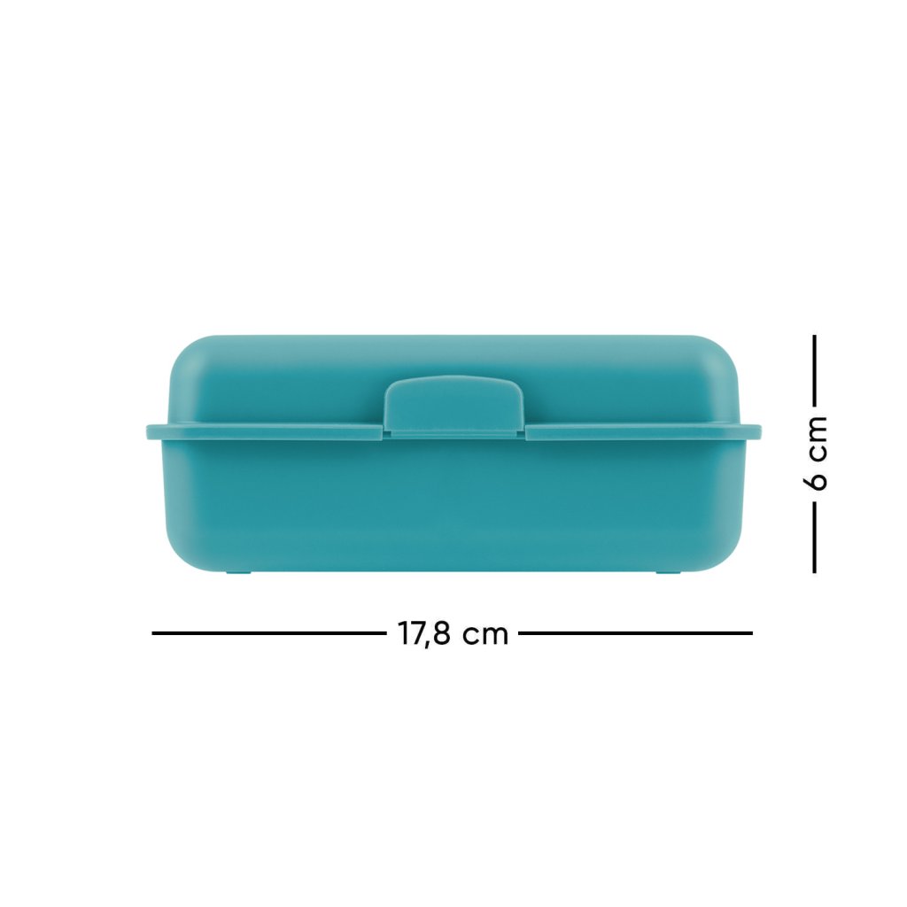 - Plastový box na občerstvenie v modrej farbe- Box má uzáver s jedným zámkom a deliacu priečku.