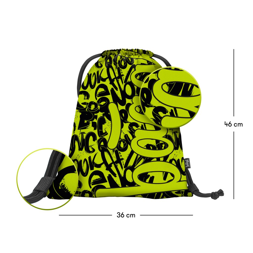 Tento výrobok je skvelou voľbou pre všetkých chlapov, ktorí hľadajú praktickú a štýlovú tašku na topánky alebo iné voľnočasové aktivity. Je ideálna na každodenné nosenie do školy, na krúžky alebo iné aktivity. Kvalitné spracovanie a atraktívny dizajn s motívom street artu zaručujú, že táto taška bude obľúbeným doplnkom každého chlapca.