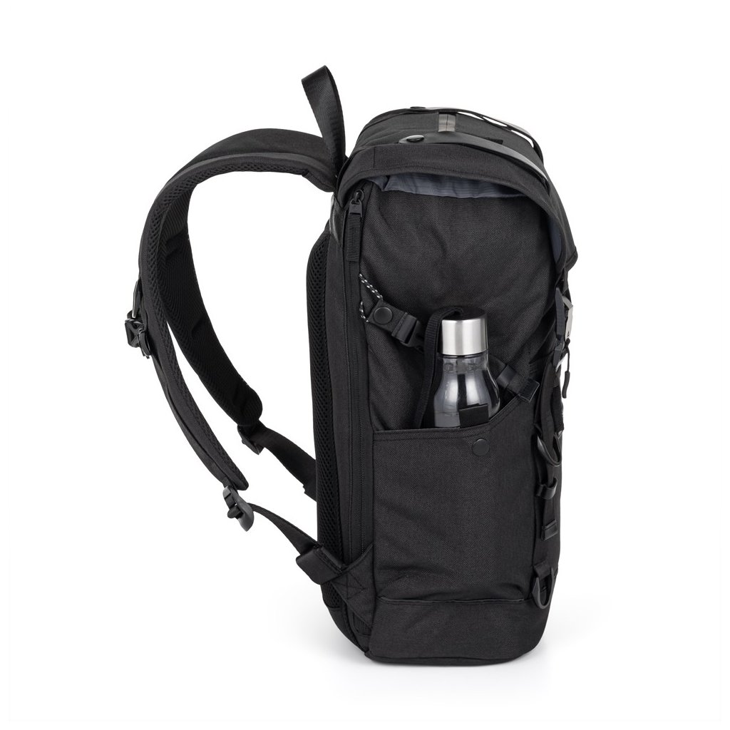 - Bočné vrecká na fľašu alebo dáždnik so sponou na zabezpečenie