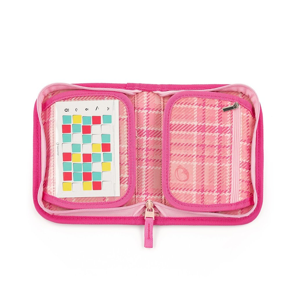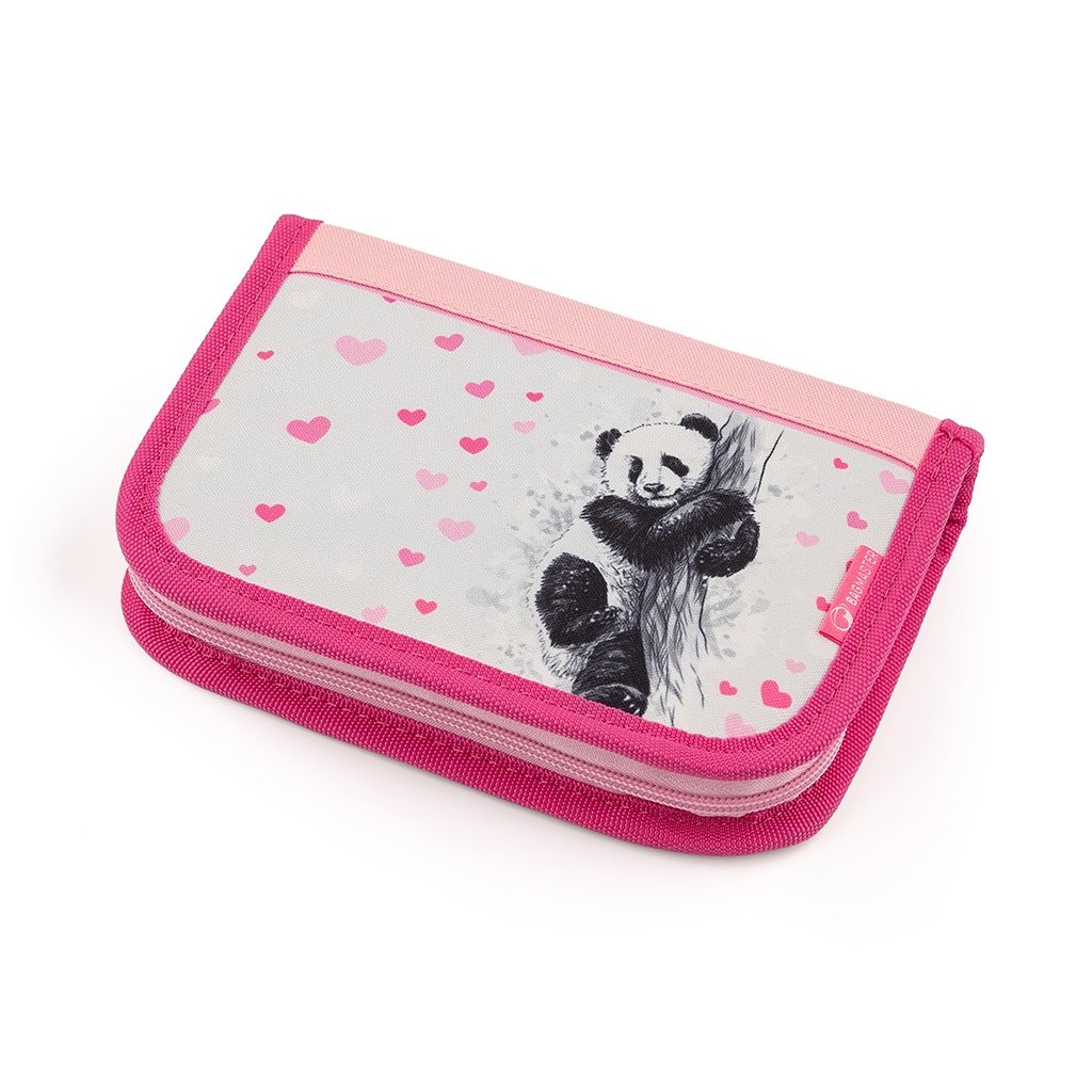 Dvojklopný peračník s pandou pre malé školáčky na prvom stupni. Pružné pútka na praktické usporiadanie všetkých pomôcok a písacích potrieb. Učebný plán so samolepkami ako darček.