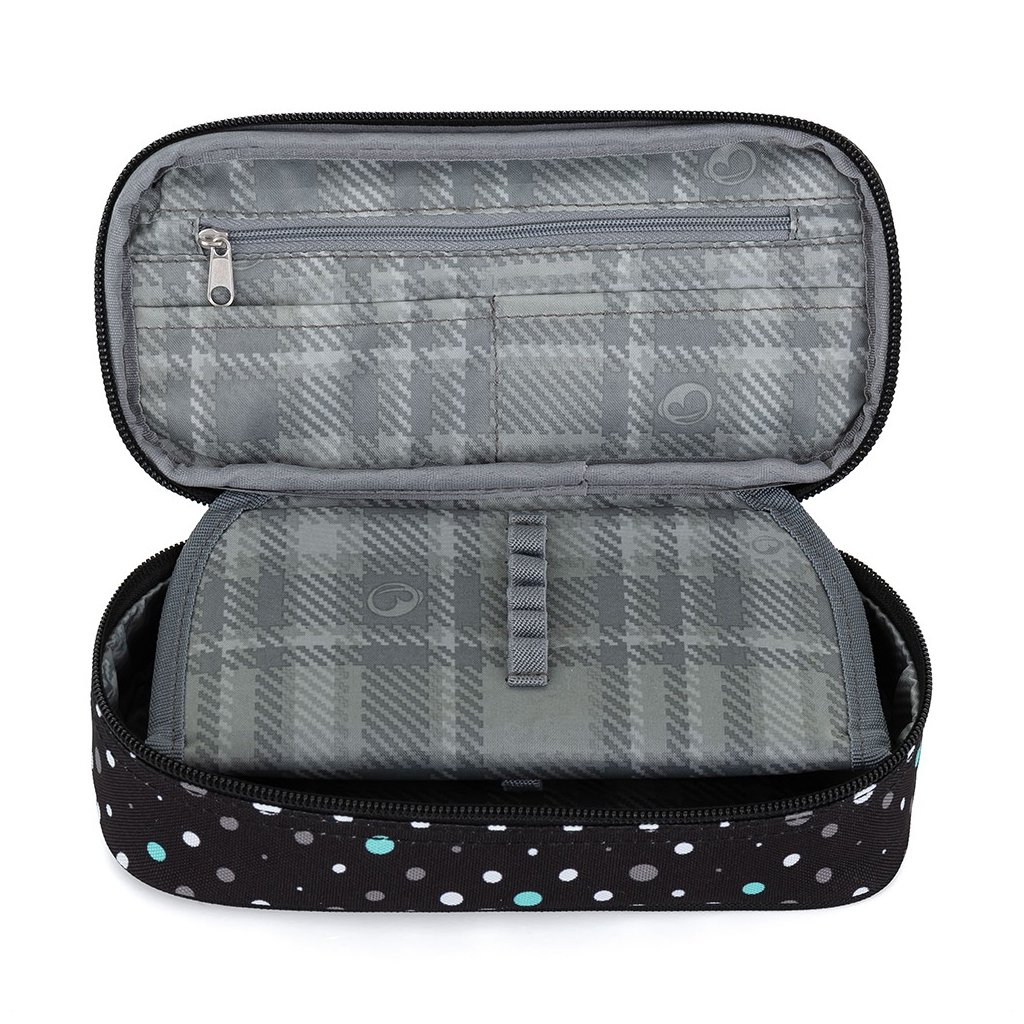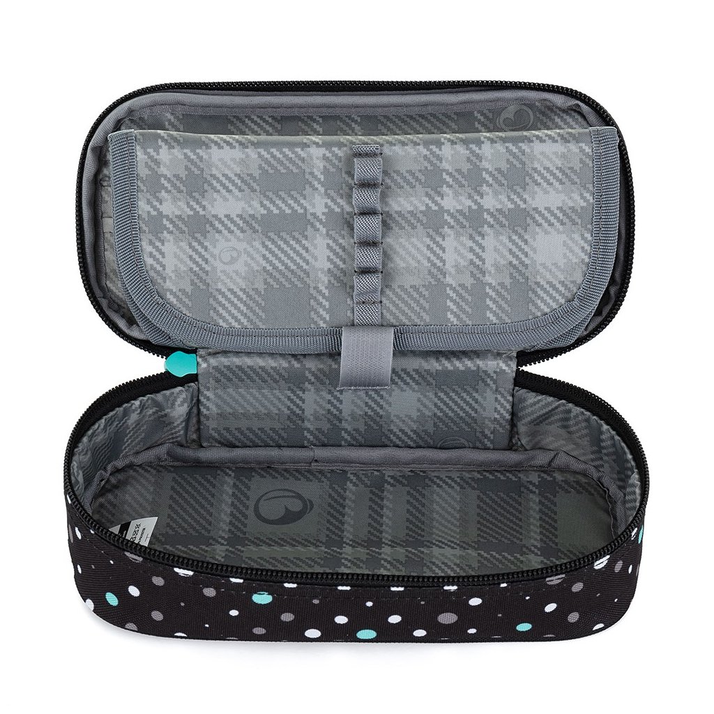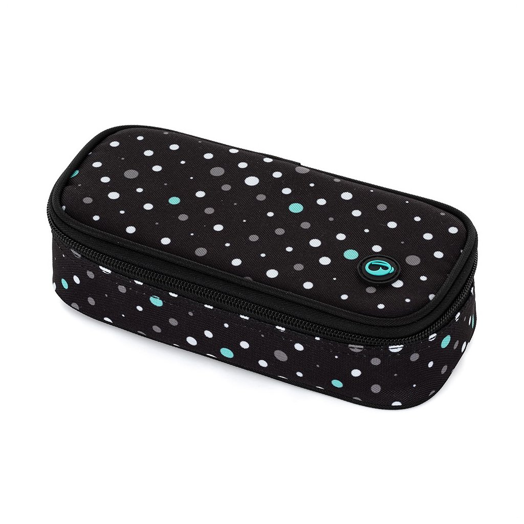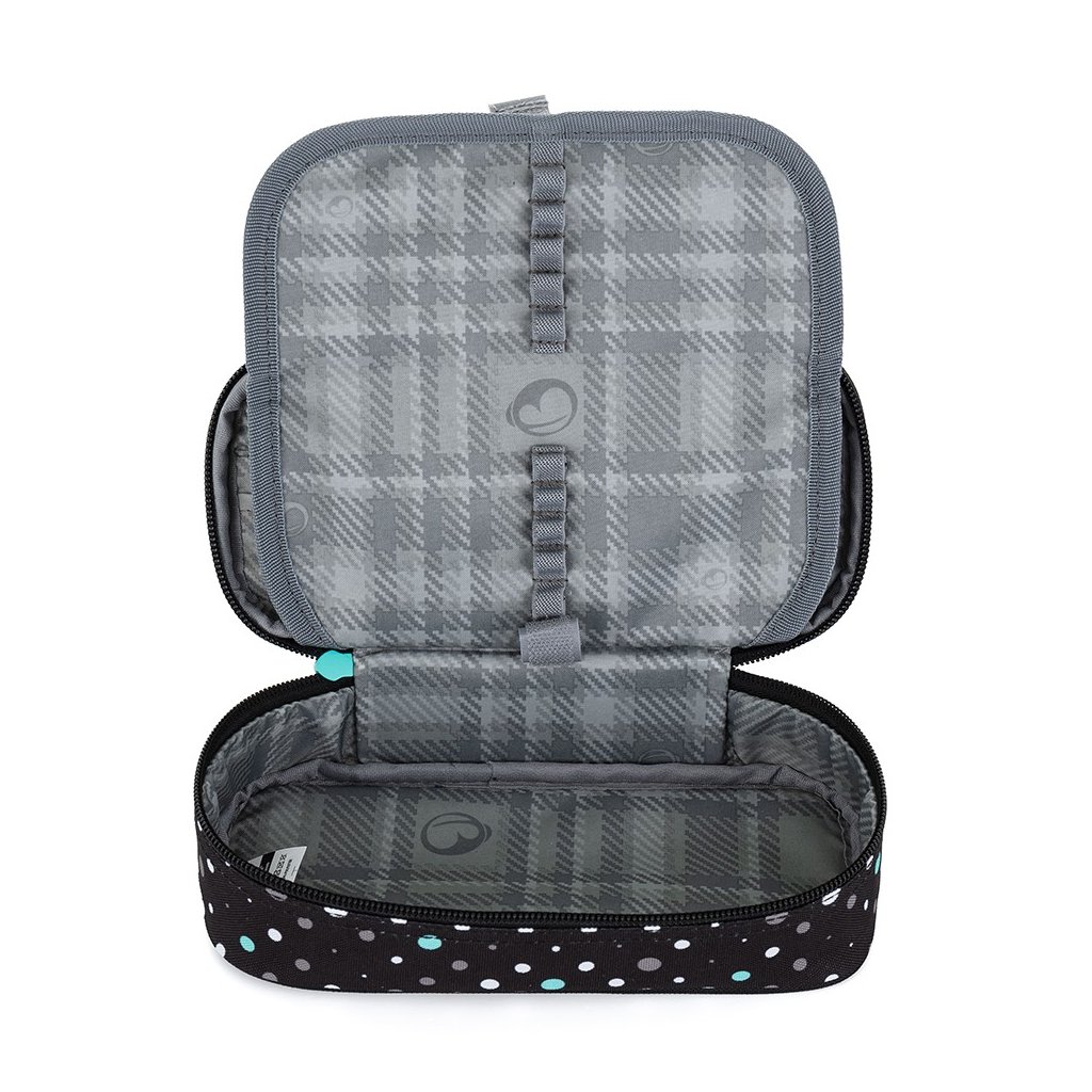 Bodkovaný peračník na školské potreby pre malú školáčku zo 4. triedy. Pod pekným obalom sa nachádza 20 gumených vreciek na perá, ceruzky a pastelky. Do priestoru pod priehradkou možno umiestniť ďalšie pomôcky, ako sú nožnice alebo lepidlo.