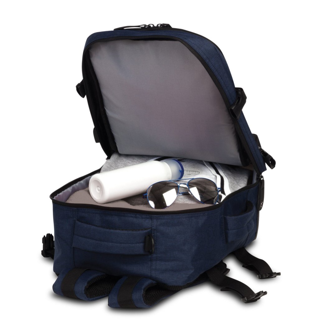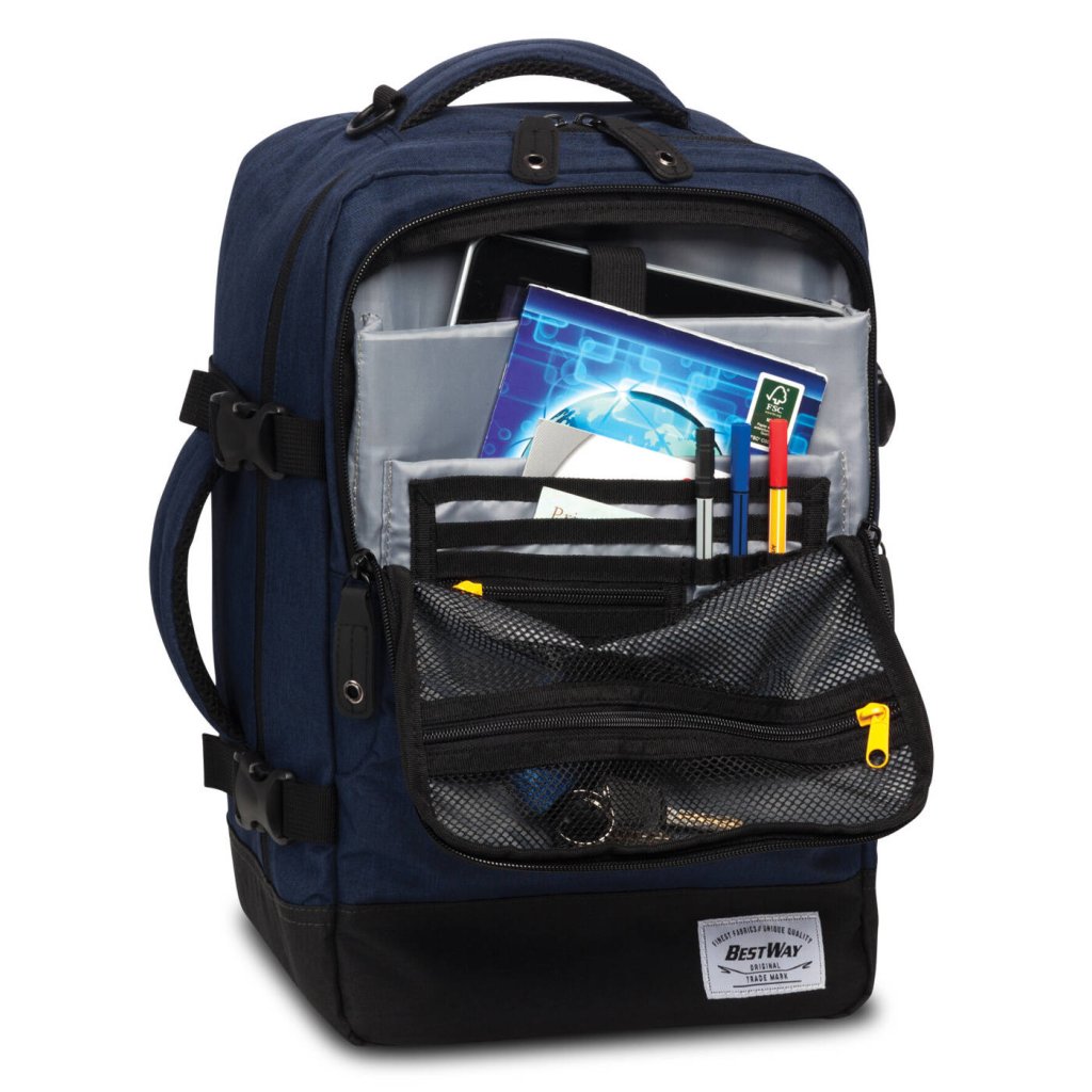 Batoh je vybavený veľkým hlavným vreckom s dvojcestným zipsom pre ľahký prístup k vašim veciam. Predné vrecko obsahuje organizér, takže bude ideálnym spoločníkom na služobných cestách alebo pri štúdiu. Vďaka textilným horným a bočným držadlám sa batoh dá ľahko prenášať v ruke. Batoh je navrhnutý s ohľadom na bezpečnosť a organizáciu vašich vecí. Jeho konštrukcia umožňuje jednoduché rozopnutie hlavného vrecka po celom obvode, čo uľahčuje balenie. Vďaka popruhu na pripevnenie na kufrový vozík môžete ľahko prenášať viac kusov batožiny naraz.