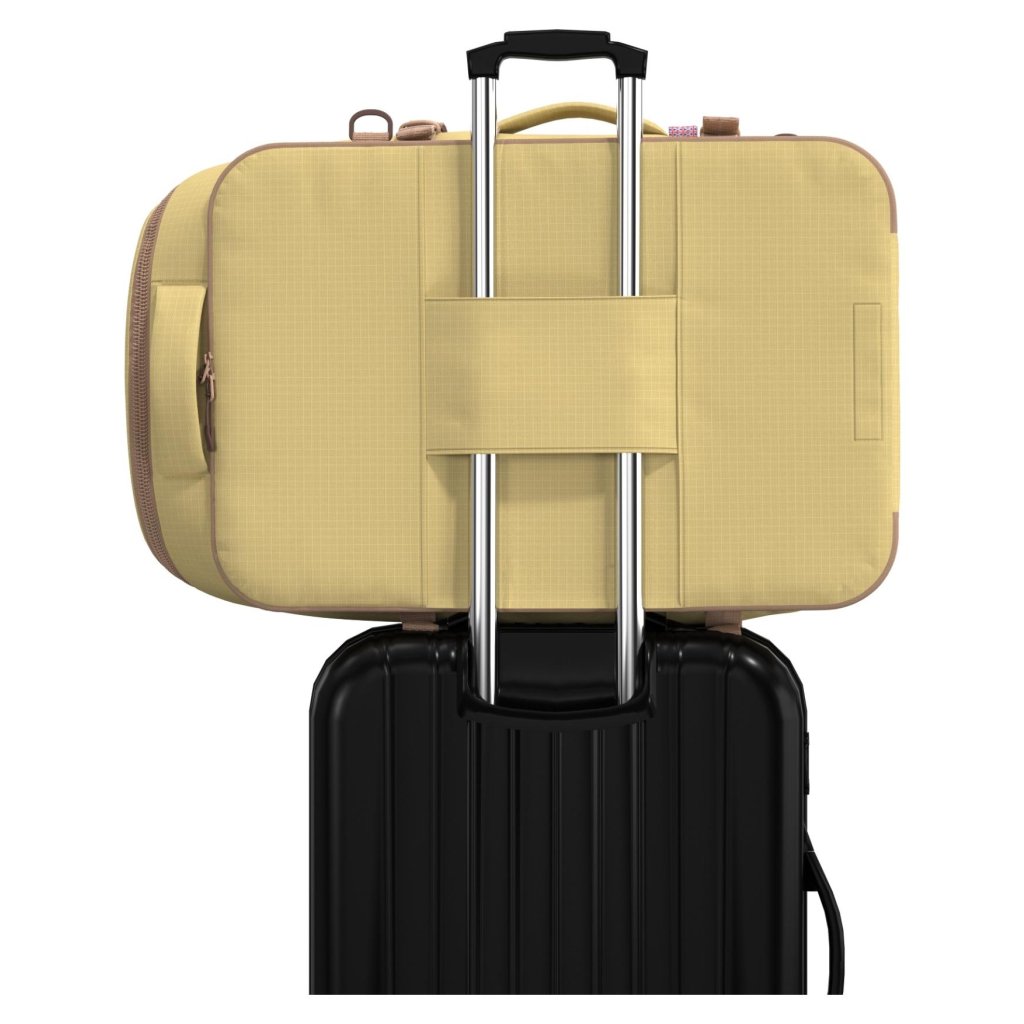 Chrbtové popruhy a bedrový pás sa dajú schovať do zadného vrecka a batoh sa dá ľahko premeniť na odbavovaciu tašku. Hlavný priestor má U-zip na jednoduché balenie a fixačné popruhy a v prednej časti je polstrovaná priehradka na notebook do veľkosti 17". Puzdro na vozík umožňuje pohodlné pripevnenie na rukoväť kufra.