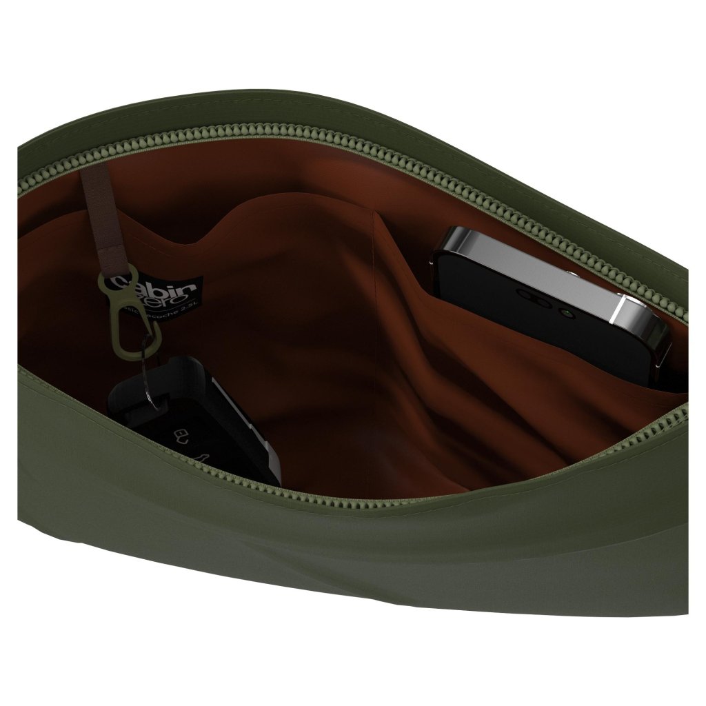 Vnútorný priestor je jasne rozdelený dve vnútorné vrecká, do ktorej sa zmestí malá čítačka Kindle Paperwhite, kompaktný fotoaparát alebo powerbanka. K dispozícii je aj vnútorný popruh s klipom na kľúčeaby sa zabránilo ich strate.