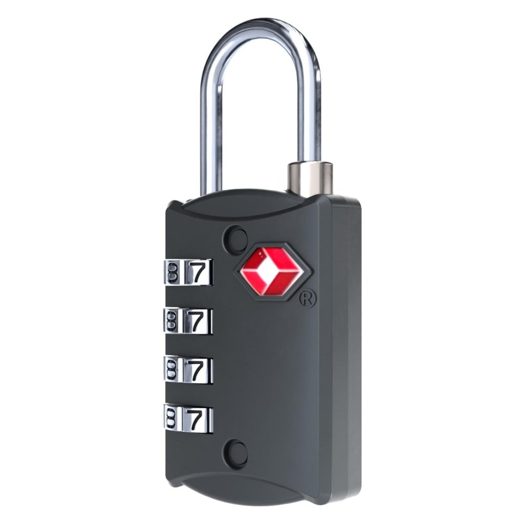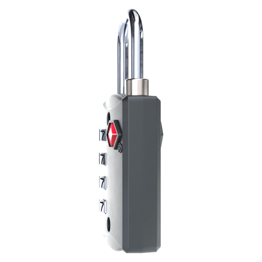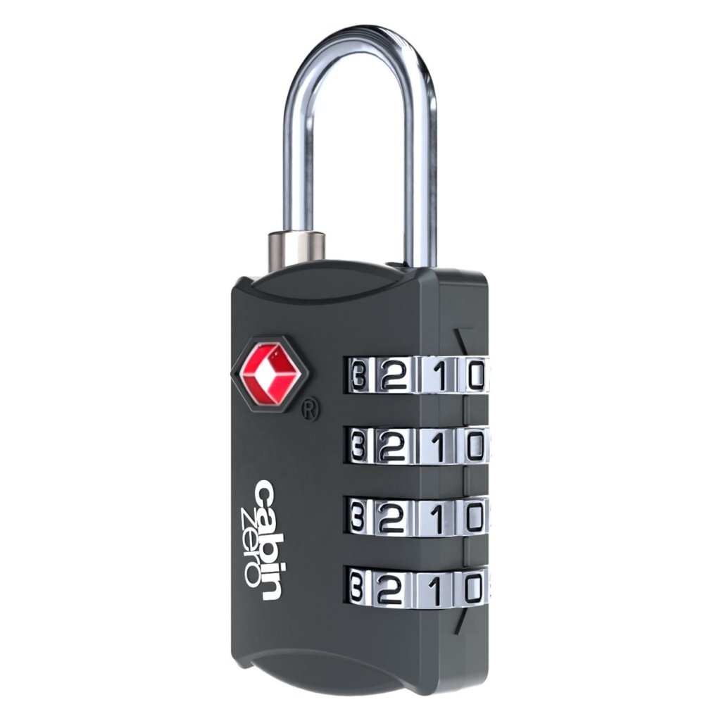 Bezpečnostný visiaci zámok TSA so štvormiestnym číselným kódom je ideálnym príslušenstvom pre batohy, tašky a kufre CabinZero.
