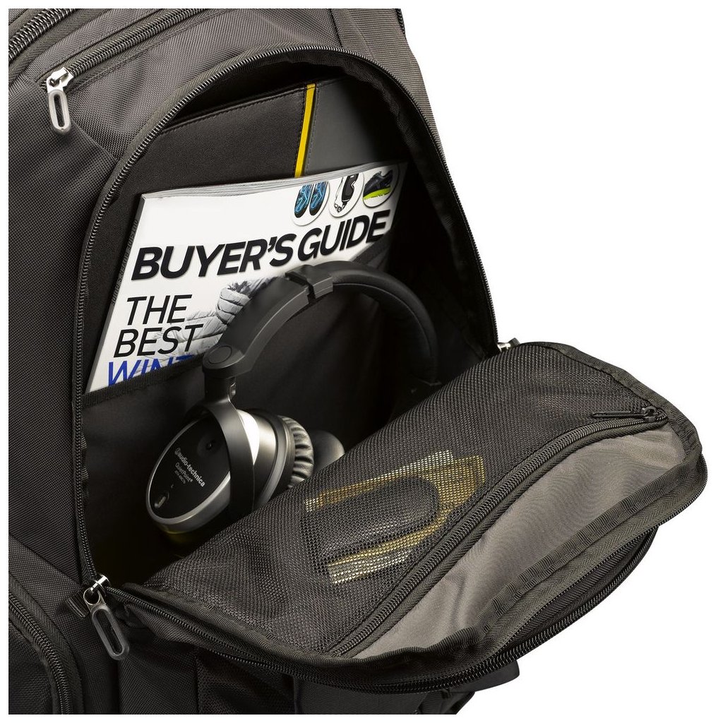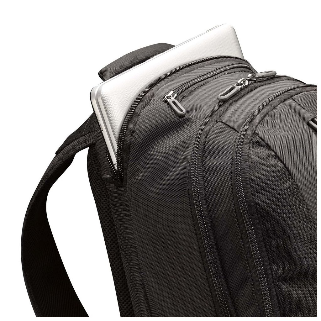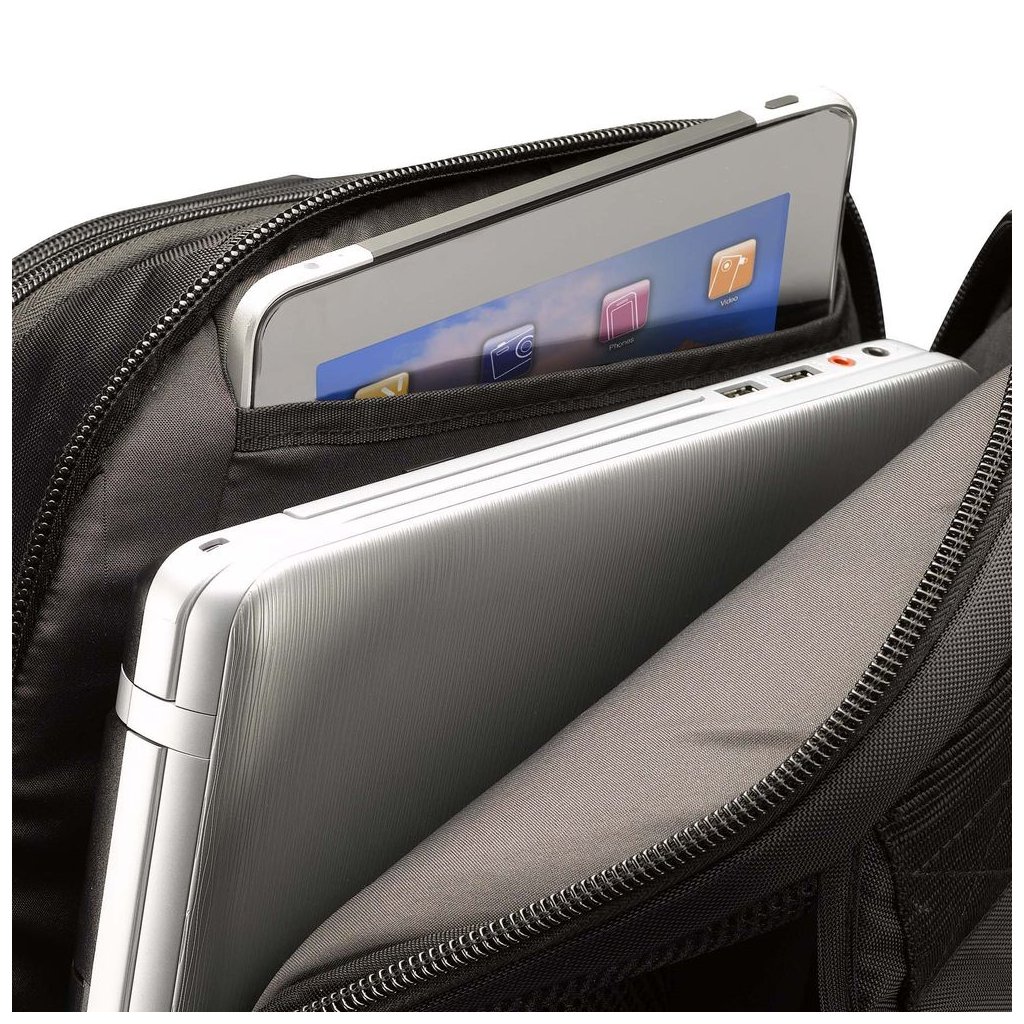 Samostatná priehradka je určená pre notebooky s uhlopriečkou 16-17,3" a tablety do 10,1". Úložný priestor je stabilný a navrhnutý tak, aby sa technológie bezpečne prenášali aj pri častom premiestňovaní.