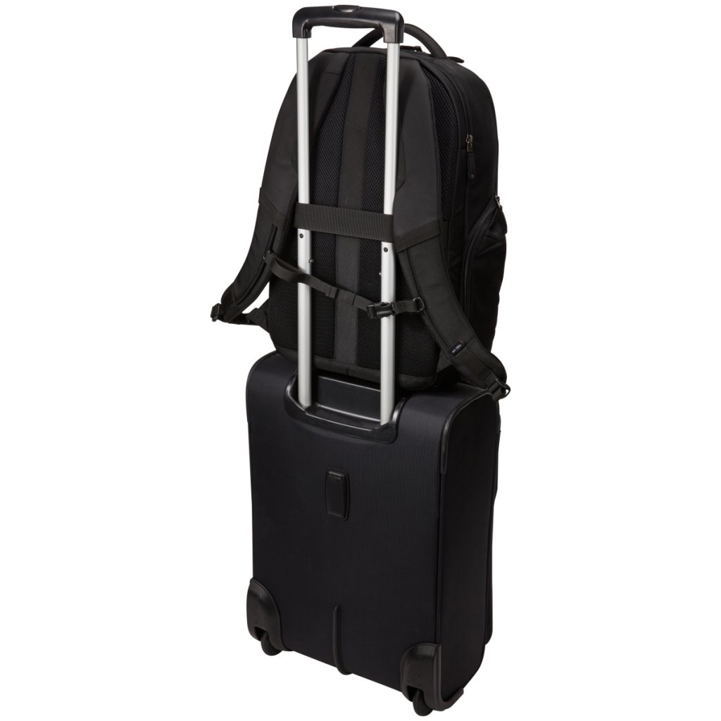 Veľkorysý organizačný panel je vybavený niekoľkými vreckami na drobnú elektroniku, káble, vizitky a kľúče, doplnenými pútkami na písacie potreby. Pohodlie pri prenášaní zabezpečujú silne polstrované ramenné popruhy, prešívaný chrbtový panel zo sieťoviny, mäkko vystlaná horná rukoväť a nastaviteľný hrudný popruh na lepšiu stabilitu pri ťažšom náklade. Praktické bočné vrecká na zips možno rozšíriť na fľašu s vodou alebo použiť ako bezpečný úložný priestor na napájací adaptér.