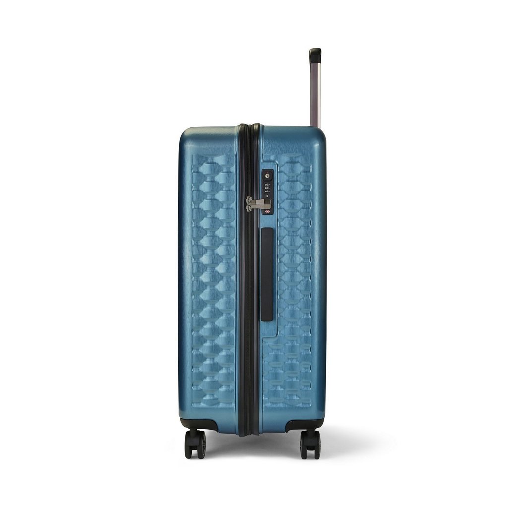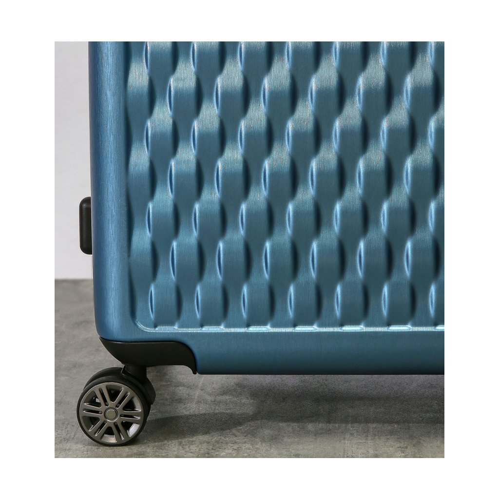 Kufor sa uzatvára pomocou zipsu. Jazdce zipsu sa dajú zapojiť do TSA zapusteného kódového zámku. Bočné aj horné madlo je plastové. Kufor je opatrený ľahkým výsuvným systémom, vnútornou prepážkou s vreckom a istiacimi popruhmi. Pod textilnou podšívkou je umiestnený celý pojazdný systém, aby nedošlo k poškodeniu systému pri preprave a je opatrený štyrmi dvojitými kolieskami, ktoré sú otočné o 360 °.