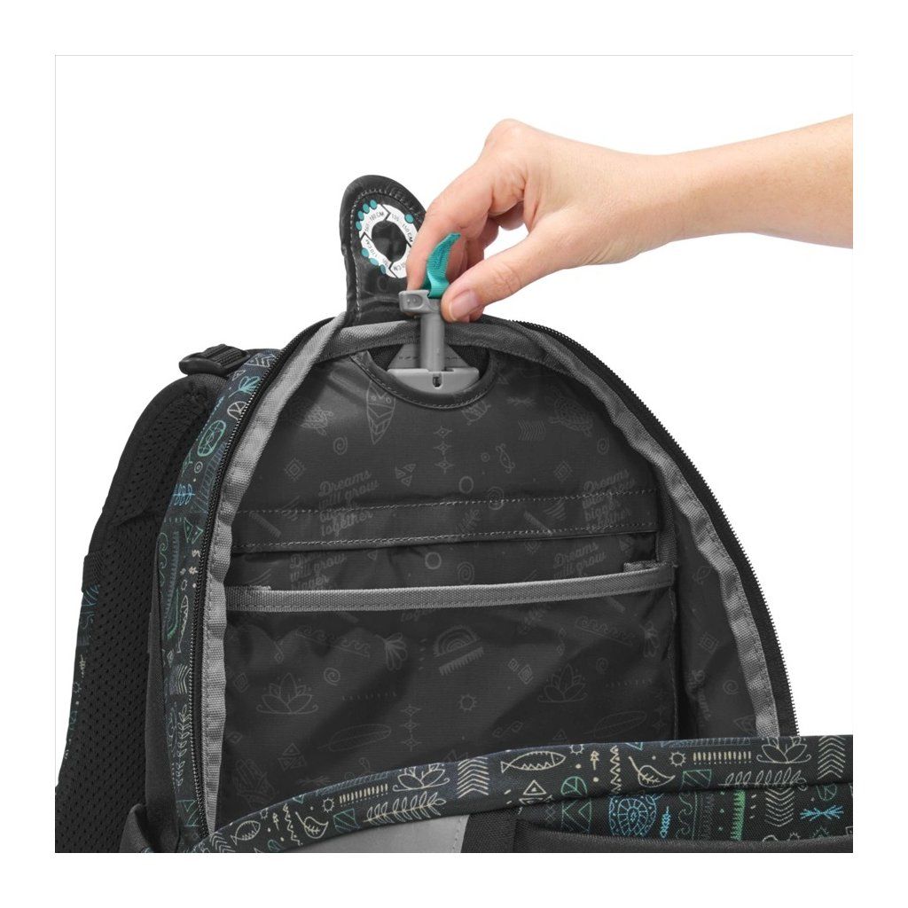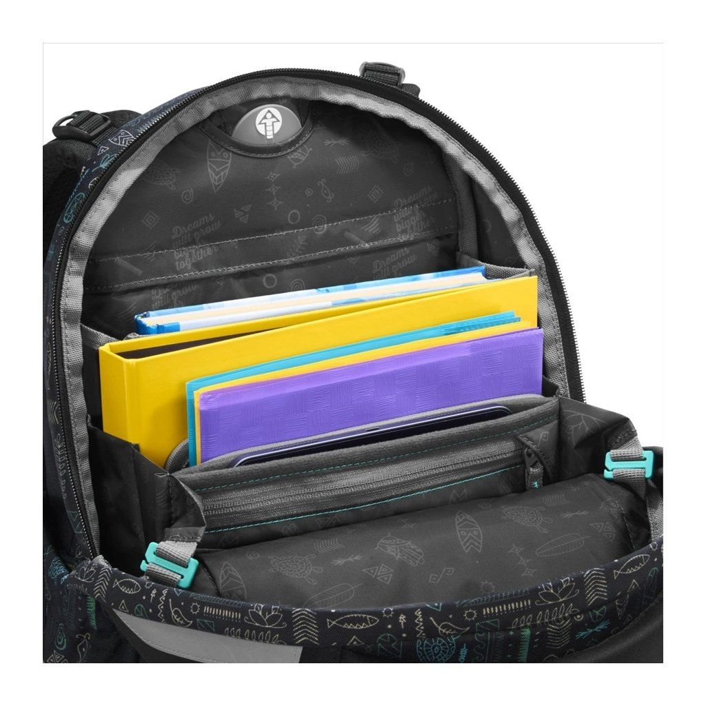 Vnútorné usporiadanie batohu ponúka dostatok priestoru na učebnice, zošity a každodennú výbavu. Hlavná priehradka s integrovanou časťou na knihy je umiestnená blízko chrbta, čo pomáha lepšiemu rozloženiu hmotnosti.