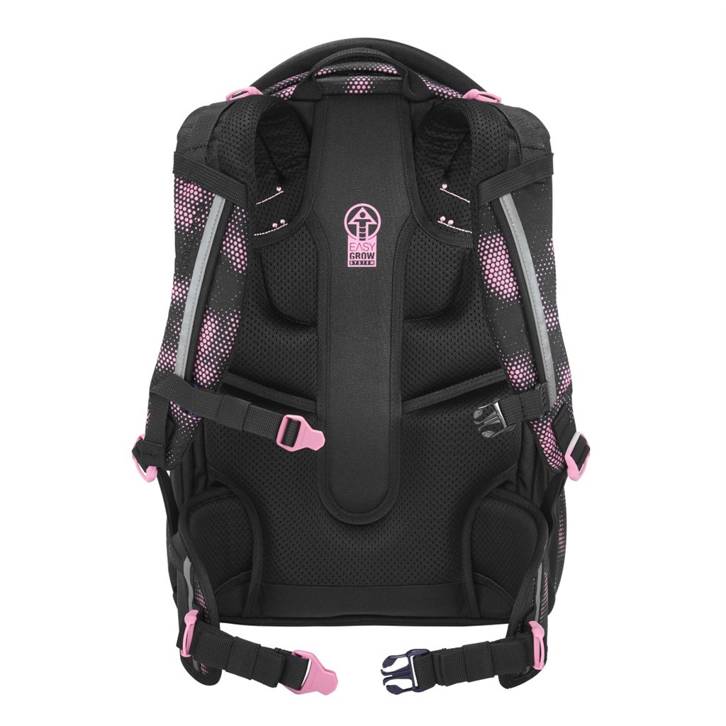 Rýchle a presné nastavenie výšky batohu pomocou otočného mechanizmu umiestneného v zadnej časti. Systém JEDNODUCHÝ SYSTÉM PESTOVANIA umožňuje plynulé nastavenie ramenných popruhov podľa aktuálnej výšky dieťaťa, takže batoh správne sedí, zostáva stabilný na chrbte a prirodzene rastie spolu s dieťaťom - dokonca aj pri väčšom zaťažení, ktoré batoh PORTER každý školský deň zvládne.