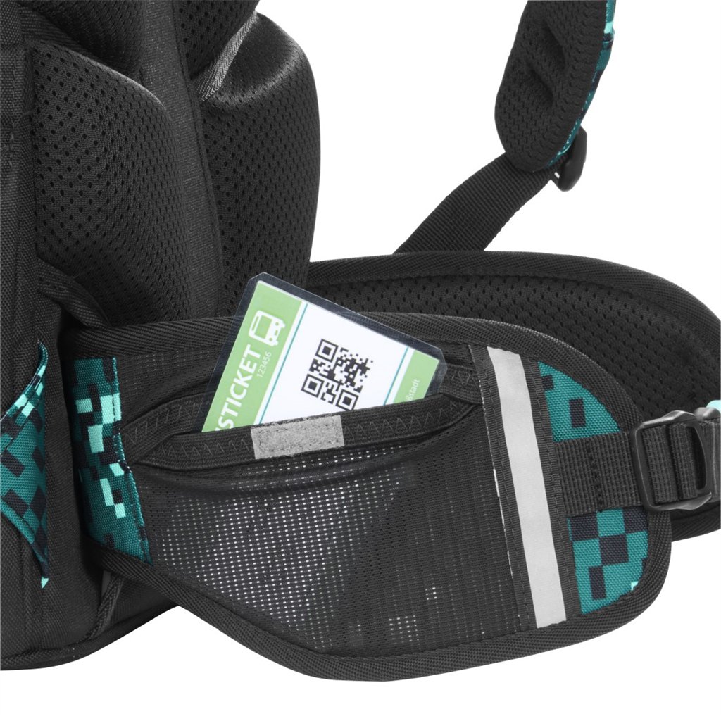 Predné vrecká poskytujú priestor na občerstvenie alebo drobnosti, zatiaľ čo bočné vrecká sú ideálne na fľašu s vodou alebo dáždnik. Vďaka prehľadnej štruktúre má dieťa vo veciach poriadok a všetko je ľahko dostupné.