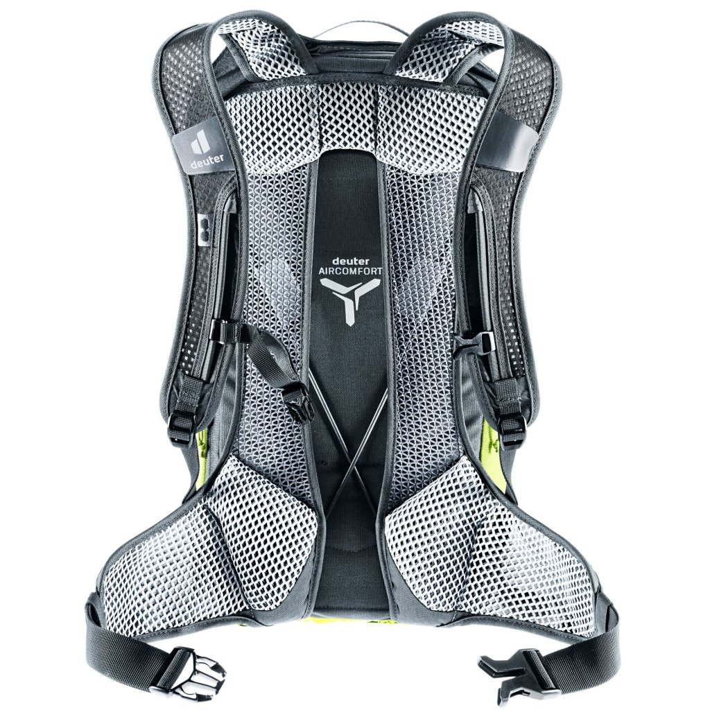 Ultraľahký, ale odolný batoh na bicykel s vynikajúcim komfortom vzhľadom na hmotnosť. Chrbtový systém deuter Aircomfort, navrhnutý špeciálne pre cyklistiku, so sieťovaným chrbtovým panelom, ktorý je rozdelený v strede, znamená, že ešte menšia časť batohu je v priamom kontakte s chrbtom, čo vytvára viac priestoru pre zaoblenú chrbticu v jazdeckej polohe. Vzduchové sieťované rebrá na bokoch, perforované ramenné popruhy a chrbtové polstrovanie zabezpečujú maximálne prúdenie vzduchu a priliehavé, tesné nosenie. Tento klimaticky neutrálny batoh na horský bicykel bez obsahu PFC využíva 100 % recyklovaný materiál tela schválený spoločnosťou bluesign® a komponenty vyrobené pomocou výrobných procesov šetrných k životnému prostrediu a zdrojom.