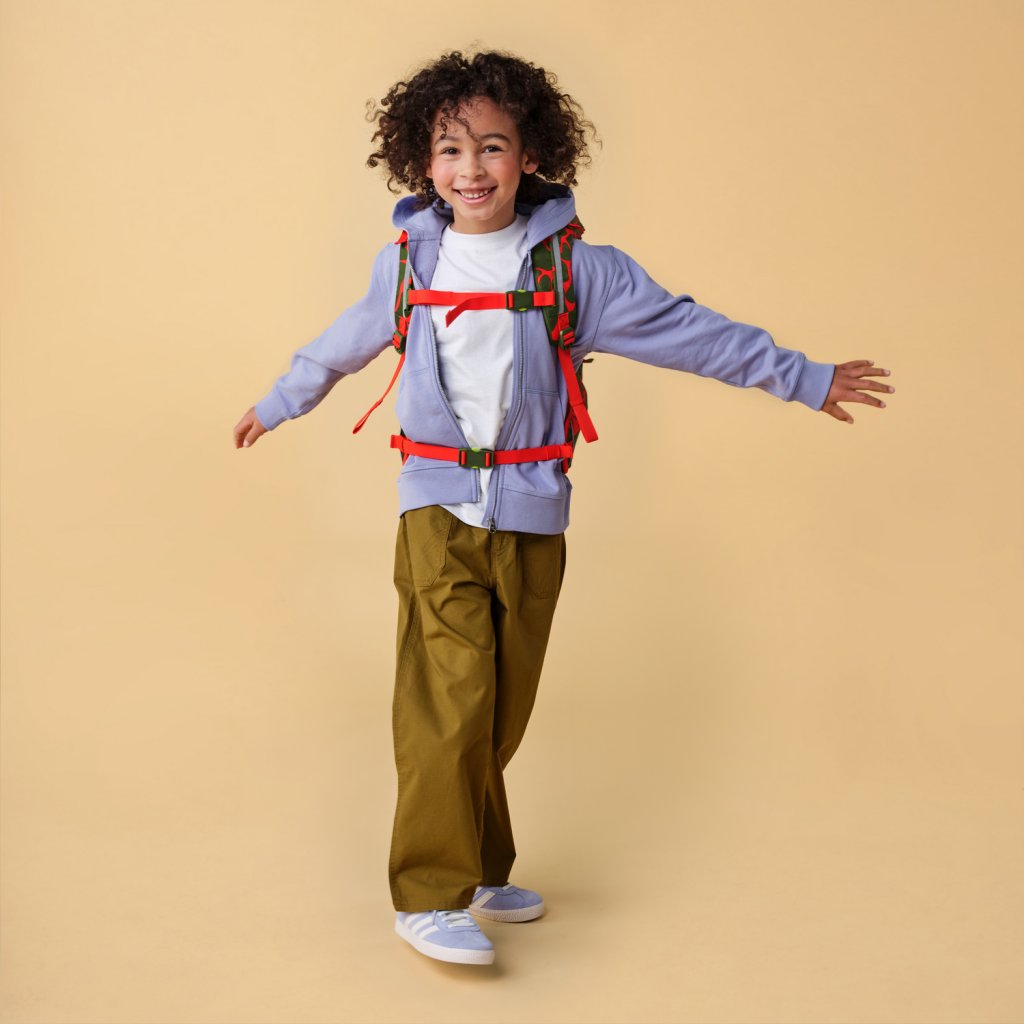 Dômyselne navrhnutý však nie je len vnútrajšok batohu Ergobag Prime, ale aj jeho vonkajšia strana je plná užitočných funkcií. Chrbtová časť batohu je ergonomicky tvarovaná a vybavená mäkkým polstrovaním, ktoré zaisťuje pohodlné nosenie aj pri dlhodobom nosení batohu. Ramenné popruhy batohu sú nastaviteľné a tiež polstrované, aby sa znížila záťaž ramien a krku. Okrem toho má batoh aj hrudný popruh, ktorý zaisťuje, že batoh zostane v bezpečnej polohe na chrbte dieťaťa.