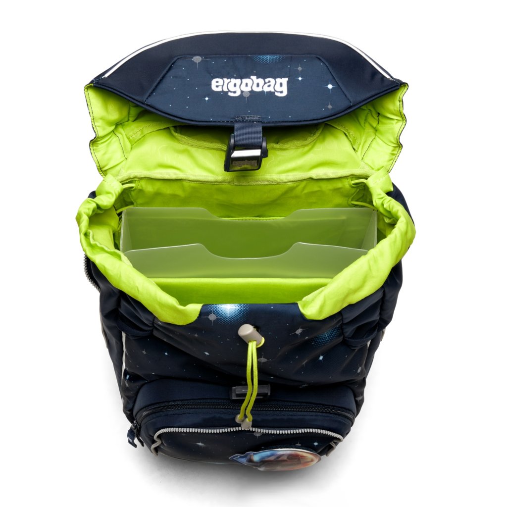 Batoh Ergobag Prime pozostáva zo štyroch hlavných priehradiek s celkovým objemom 20 litrov, ktoré poskytujú dostatok priestoru na uloženie učebníc, zošitov a ďalších potrebných vecí. Tieto komory sú rozdelené do niekoľkých priehradiek, čo umožňuje efektívnu organizáciu vnútorného priestoru a ľahký prístup k predmetom. Okrem toho batoh obsahuje niekoľko vreciek vrátane bočných vreciek na nápoje a predného vrecka na drobnosti.
