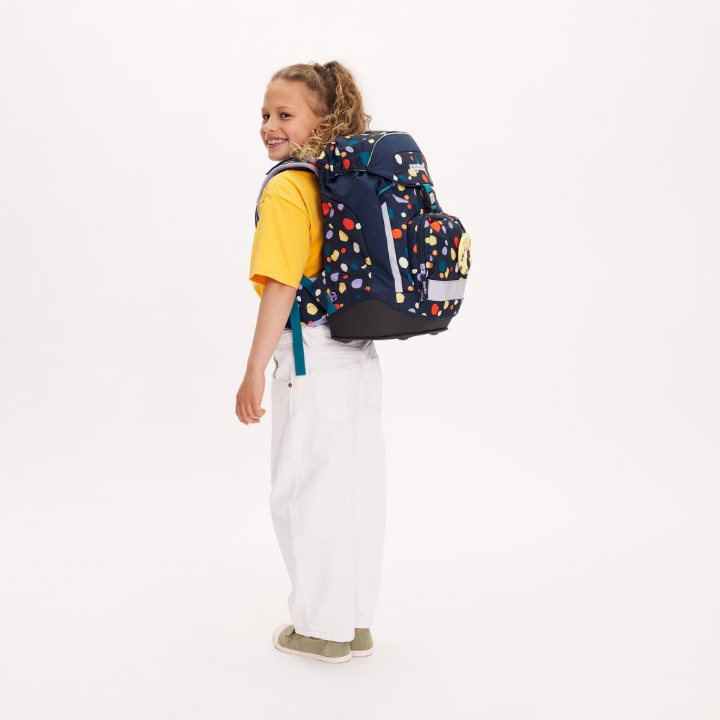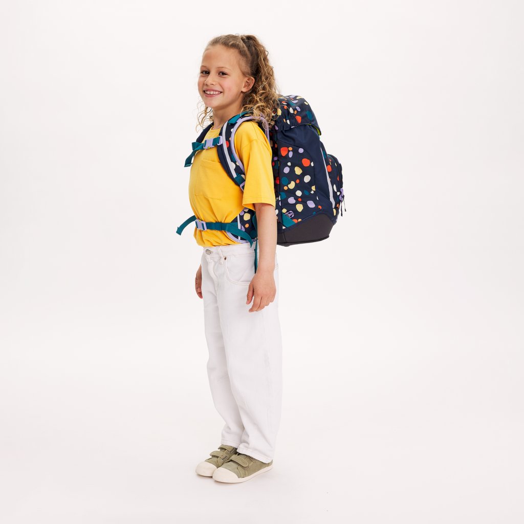 Dômyselne navrhnutý však nie je len vnútrajšok batohu Ergobag Prime, ale aj jeho vonkajšia strana je plná užitočných funkcií. Chrbtová časť batohu je ergonomicky tvarovaná a vybavená mäkkým polstrovaním, ktoré zaisťuje pohodlné nosenie aj pri dlhodobom nosení batohu. Ramenné popruhy batohu sú nastaviteľné a tiež polstrované, aby sa znížila záťaž ramien a krku. Okrem toho má batoh aj hrudný popruh, ktorý zaisťuje, že batoh zostane v bezpečnej polohe na chrbte dieťaťa.