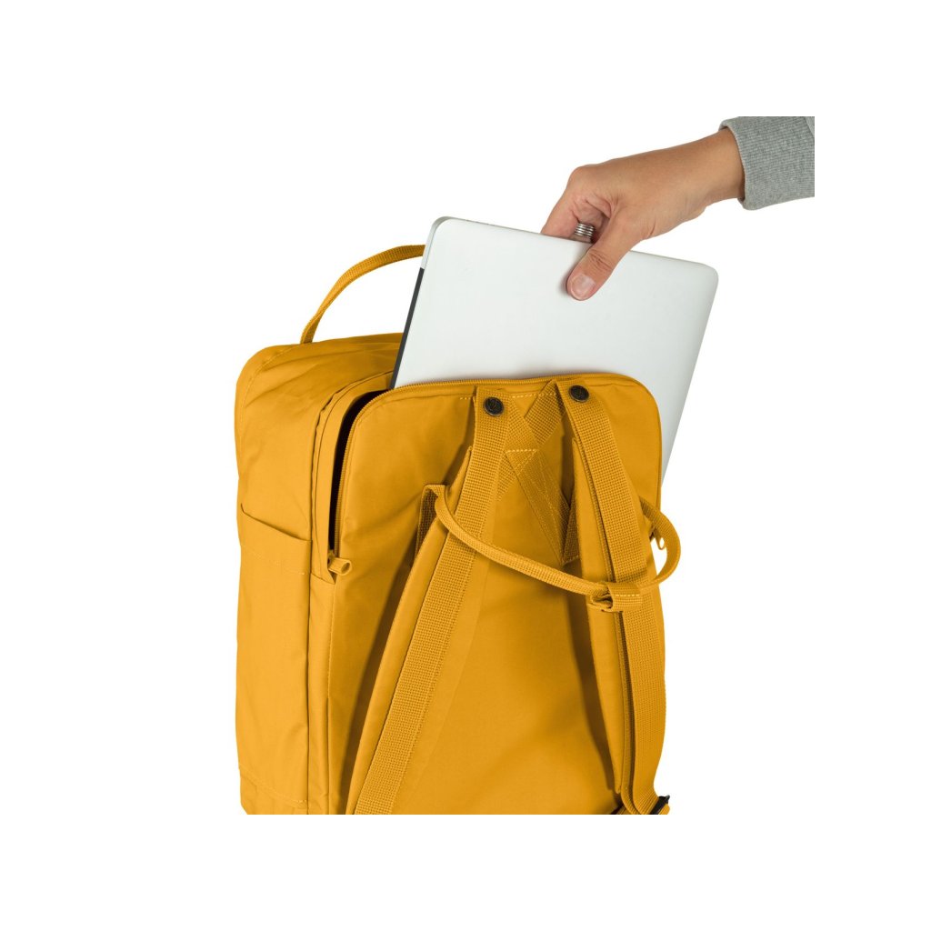 Verzia Kånken Laptop 15" je vyrobená z odolného vinylu F a ponúka samostatnú polstrovanú priehradku, ktorá bezpečne chráni 15" notebooky. Vo vnútri hlavného priestoru má ďalšie vrecko na zips, predné vrecko na zips na hornej strane, dve bočné vrecká a pohodlné, polstrované ramenné popruhy.