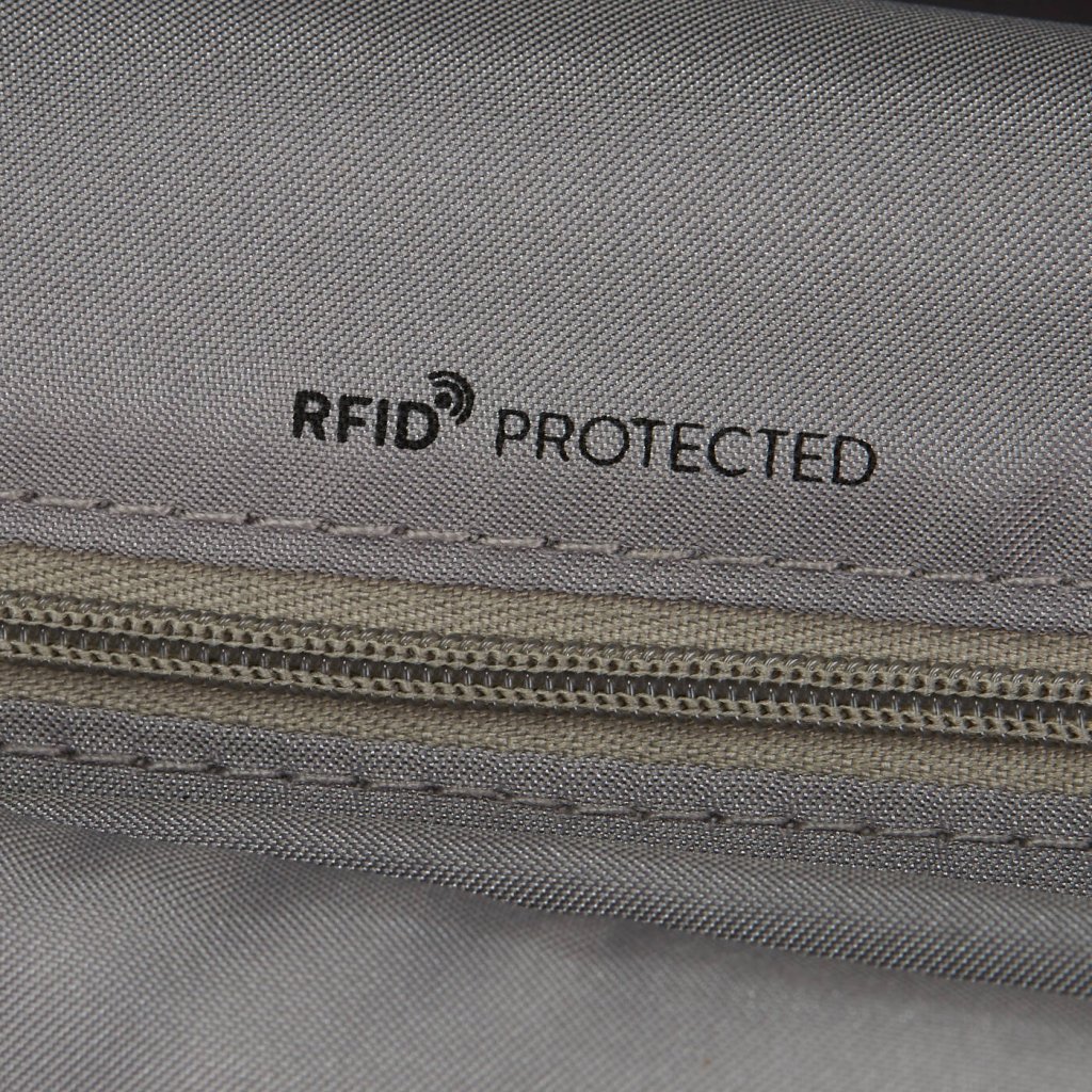 Na bezpečný prenos platobných alebo identifikačných kariet s technológiou RFID je batoh vybavený úložným priestorom z materiálu, ktorý dokáže zabrániť prenosu rádiových frekvencií z batohu. Týmto spôsobom nie je možné čítať údaje na diaľku pomocou čítačky neoprávneným spôsobom. Špeciálne vrecko v batohu je chránené proti RFID.