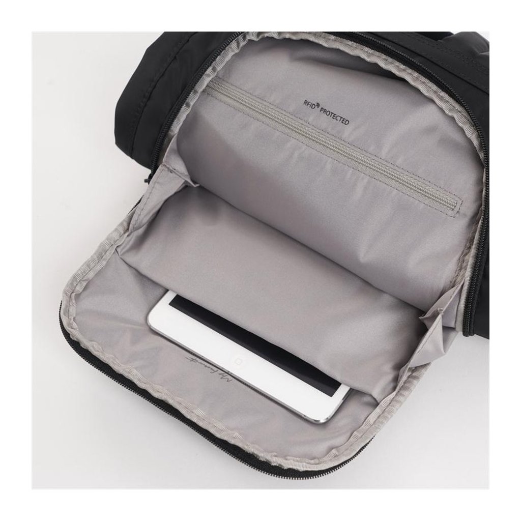 Na bezpečný prenos platobných alebo identifikačných kariet s technológiou RFID je batoh vybavený úložným priestorom z materiálu, ktorý dokáže zabrániť prenosu rádiových frekvencií z batohu. Týmto spôsobom nie je možné čítať údaje na diaľku pomocou čítačky neoprávneným spôsobom. Špeciálne vrecko v batohu je chránené proti RFID.
