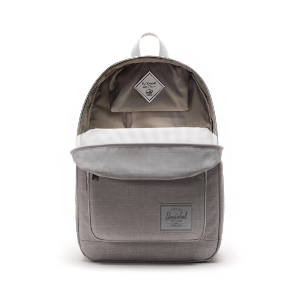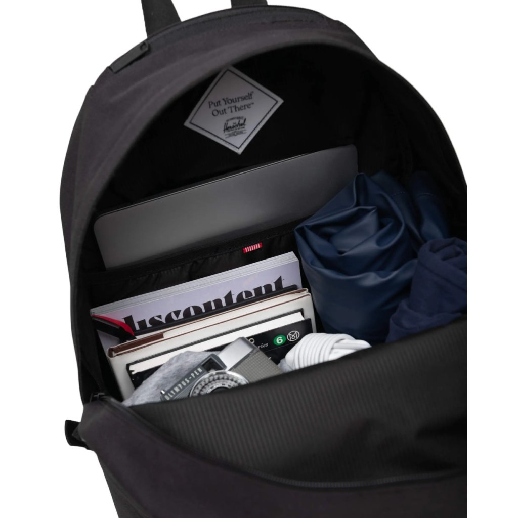 - Vnútorný štítok a značky: nápis "Put Yourself Out There™" a ikonická záložka Herschel Supply DNA dodávajú batohu na jedinečnosti.