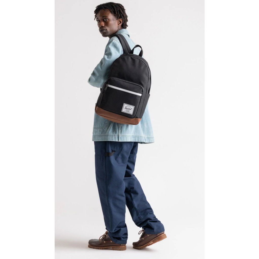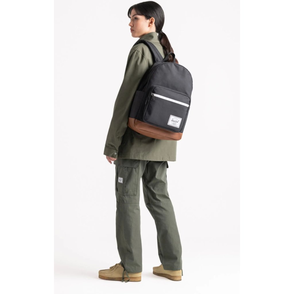 - Materiál: Tkanina EcoSystem™ 600D a tonálny pruh EcoSystem™ Liner, obe vyrobené zo 100 % recyklovaných plastových fliaš, zdôrazňujú záväzok spoločnosti Herschel k udržateľnosti.