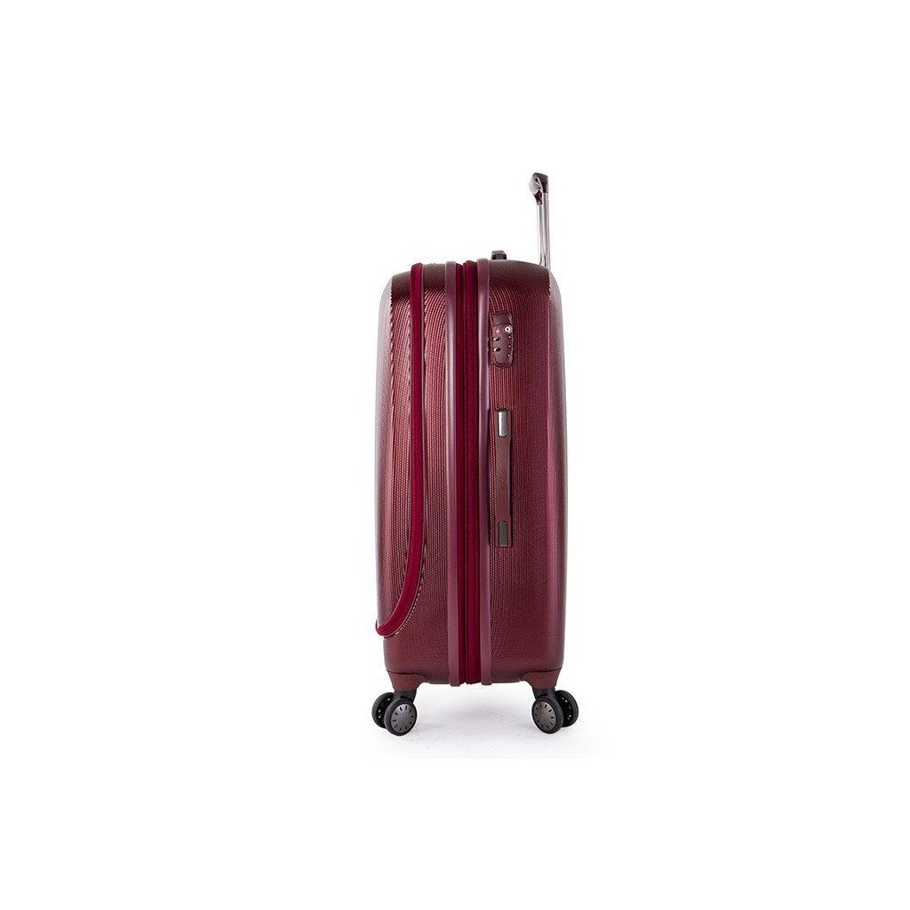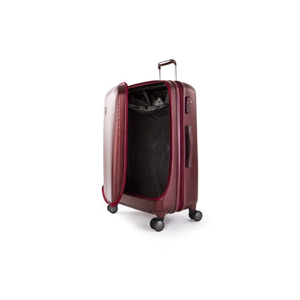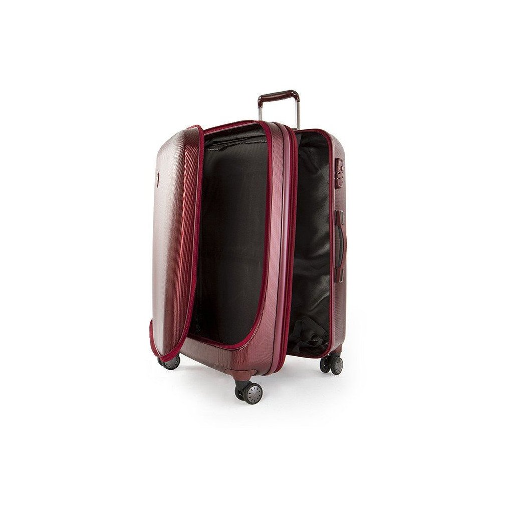 Exkluzívny škrupinový kufor so štyrmi kolieskami, štýlovým vzhľadom a patentovaným systémom balenia.