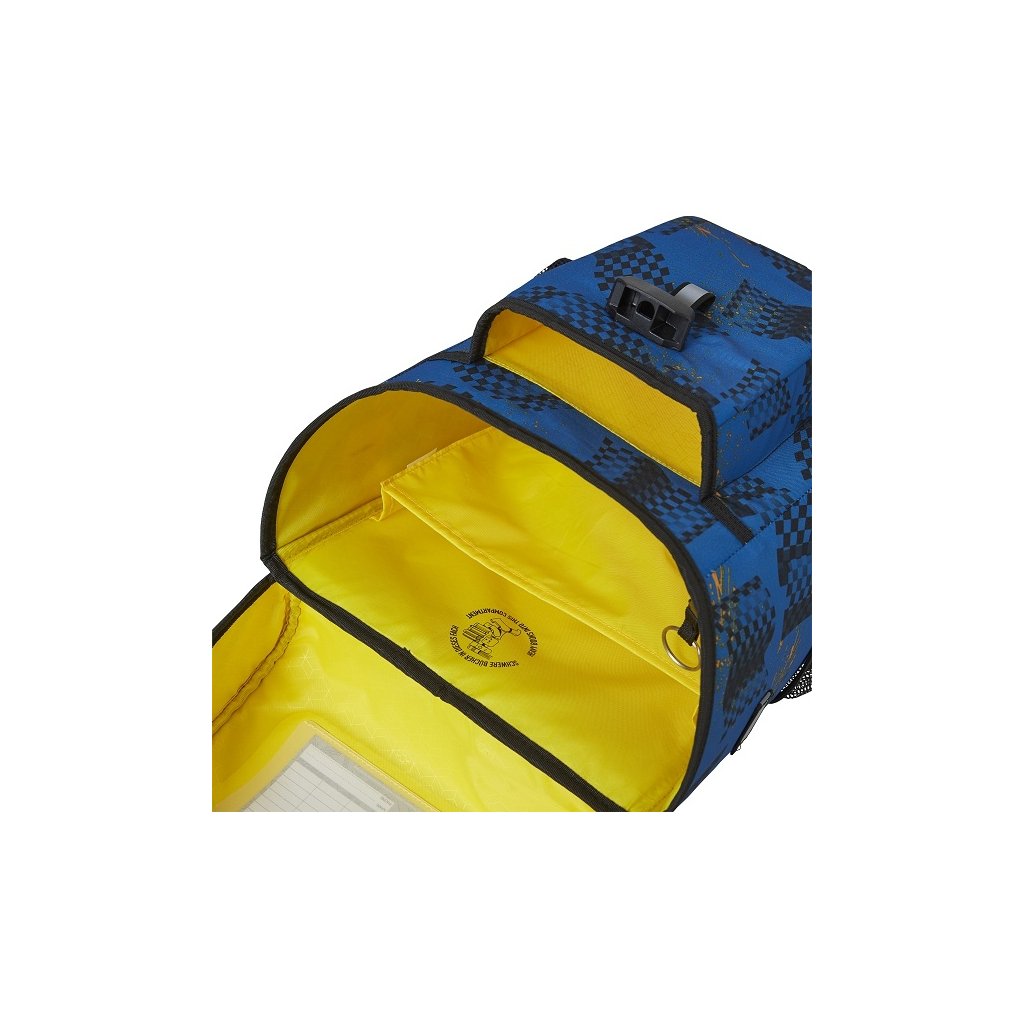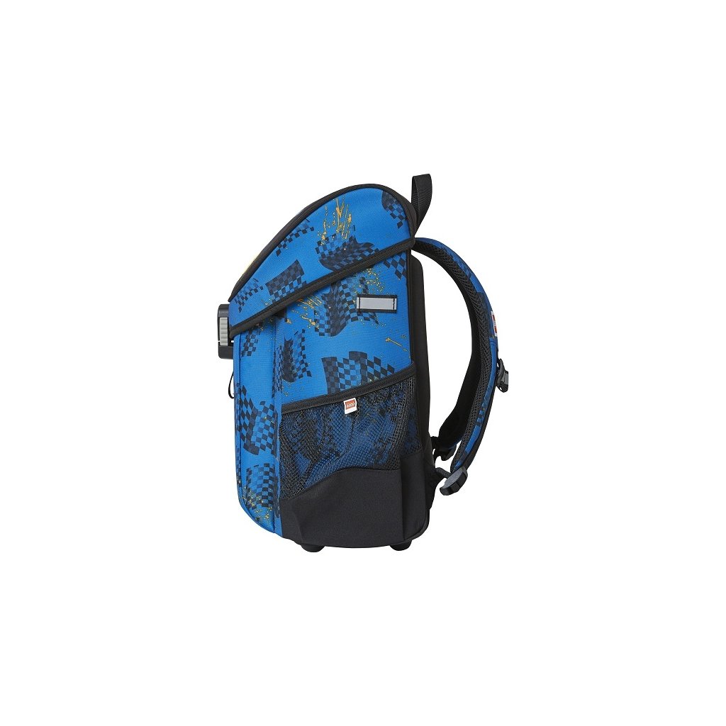 Skvelá a priestranná školská aktovka s množstvom praktických funkcií. Táto ľahká školská aktovka má dostatok miesta na všetky knihy alebo zošity, krabičku na obed a fľašu na vodu. Po stranách sú 2 sieťované vrecká a vpredu malé vrecko, do ktorého sa ľahko zmestí puzdro na stavebnicu LEGO. Na zabezpečenie vysokého pohodlia pri nosení je aktovka vybavená vnútornou priehradkou na ťažšie predmety, ktorá ich udrží blízko chrbta pre rovnomerné rozloženie hmotnosti, ako aj polstrovanými nastaviteľnými ramennými popruhmi a nastaviteľným hrudným popruhom. Vo vnútri hlavného vrecka nájdete nielen rozvrh hodiniek, ale aj sponu na kľúče, ktorú možno pripevniť napríklad k peňaženke LEGO alebo vrecku LEGO. Školská aktovka EASY má pevné veko s plastovým zámkom, ktoré sa dá ľahko otvoriť jednou rukou. Aby bola aktovka pri otvorenom veku stabilná, na spodnej strane spevneného dna sú umiestnené plastové nožičky, ktoré zároveň chránia aktovku pred znečistením a vlhkosťou. Aktovka je vyrobená z materiálu odpudzujúceho vodu a nečistoty, na všetkých stranách aktovky sú umiestnené reflexné prvky.