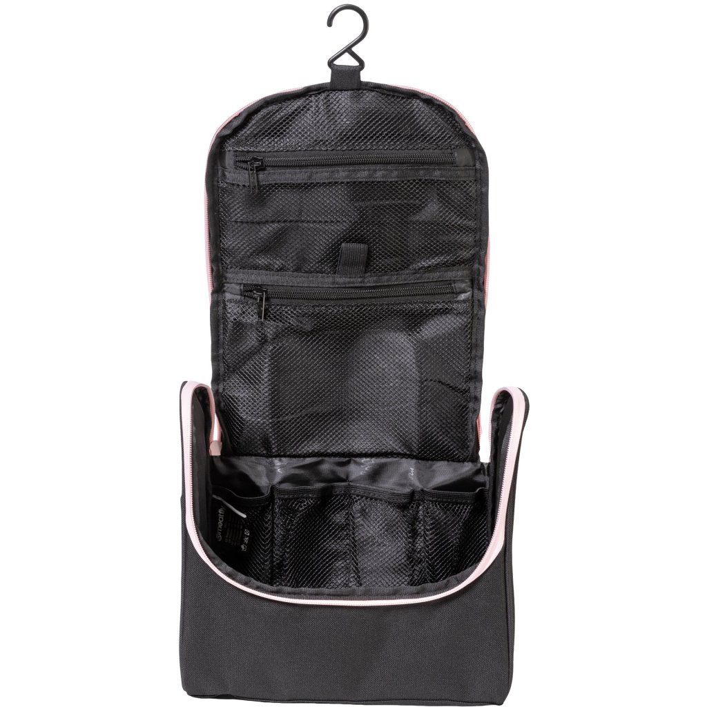 Cara je nielen krásny na pohľad, ale aj veľmi funkčný. Ponúkapriestranné hlavné vrecko na zipsdo ktorej sa zmestia aj väčšie balíky. Vo vnútri nájdetedve menšie vrecká na zips na drobnosti aštyri priehradky na fľašeaby boli fľaše stabilné a bezpečné. Šikovnéháčik na zavesenie umožňuje mať tašku poruke aj v malých kúpeľniach alebo na cestách bez políc.