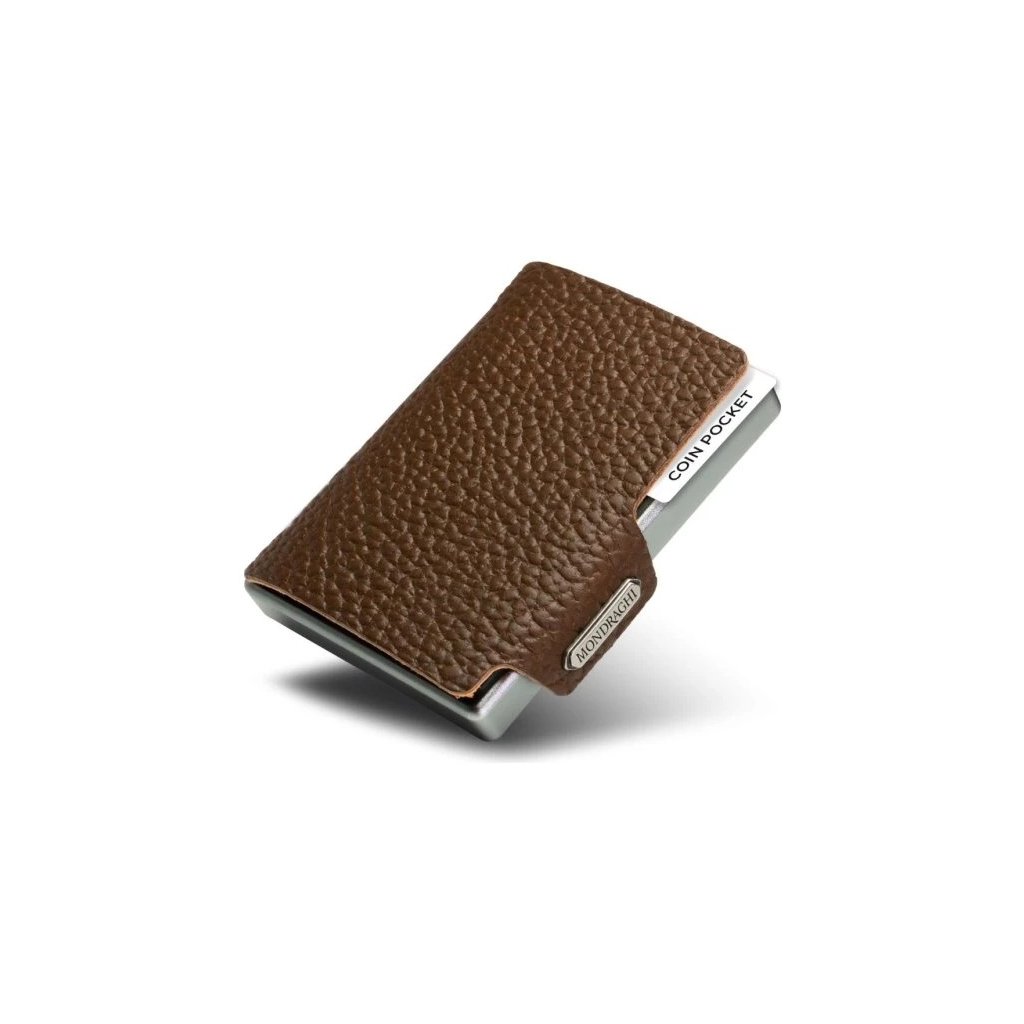 Mini peňaženka Mondraghi One Plus Brown - hliník a koža, RFID