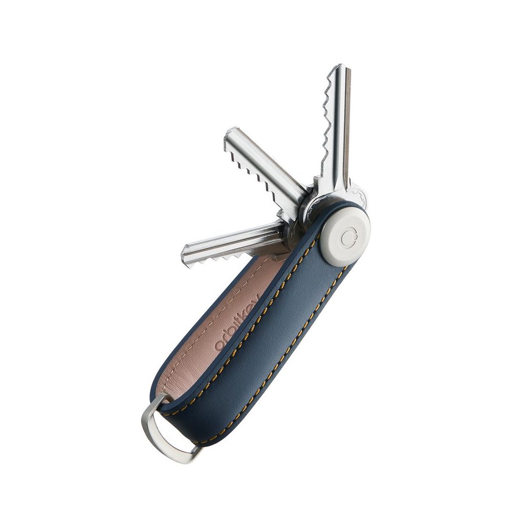 Orbitkey 2.0 je osobitý organizér kľúčov, ktorý sa skladá z klasický kožený materiál, čo zaručuje nadčasový vzhľad a dlhú životnosť. Táto elegantná tmavomodrá kľúčenka s hnedým prešívaním premení vaše kľúče na elegantnú a pokojnú súpravu, ktorú oceníte každý deň. Je vyrobený z hladkej vrchnej kože a vybavený oceňovaným uzamykacím mechanizmom, ktorý bezpečne pojme 2-7 kľúčov.