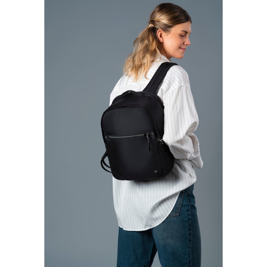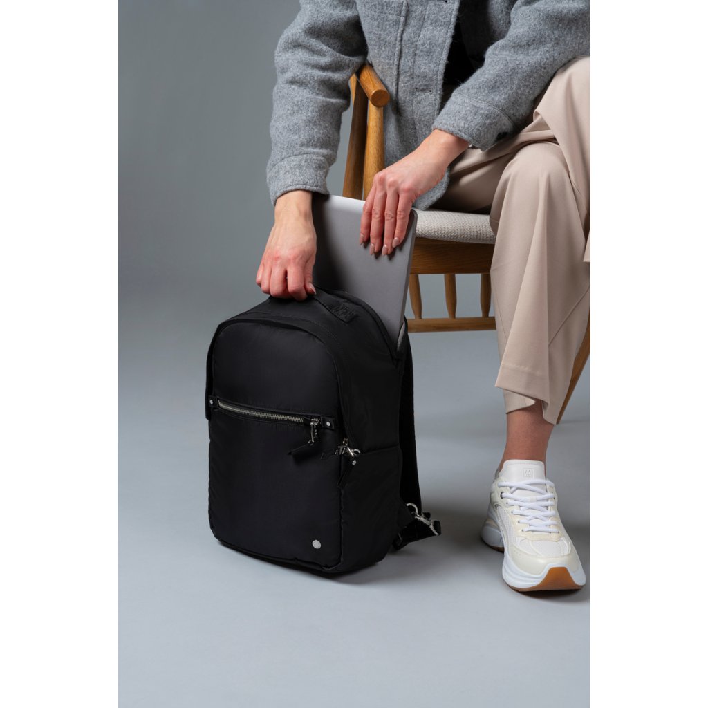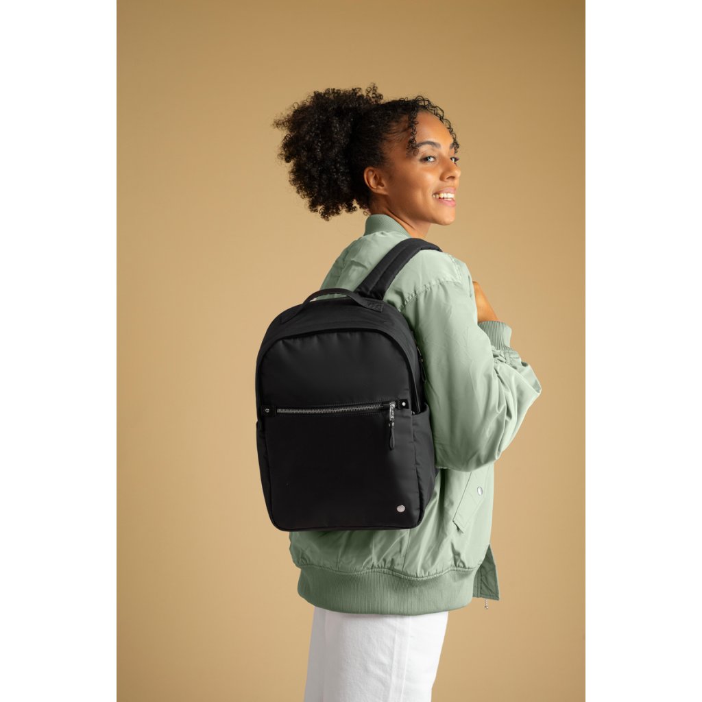 Batoh Pacsafe® W 10L proti krádeži je navrhnutý s ohľadom na bezpečnosť, funkčnosť a udržateľnosť, takže je ideálnym spoločníkom na každodenné cestovanie a víkendové výlety. Tento batoh je vybavený samostatná priehradka na 13-palcový notebook aby sa zabezpečil jeho bezpečný prenos a pohodlný prístup počas letiskových kontrol. Priestranná predná priehradka je ideálna na uloženie všetkých potrebných vecí, od nabíjačiek a poznámkových blokov až po kozmetickú taštičku. Batoh obsahuje aj veľkéRFID-blokovacie vrecko ktorá chráni vašu peňaženku a dokumenty pred nechceným skenovaním.
