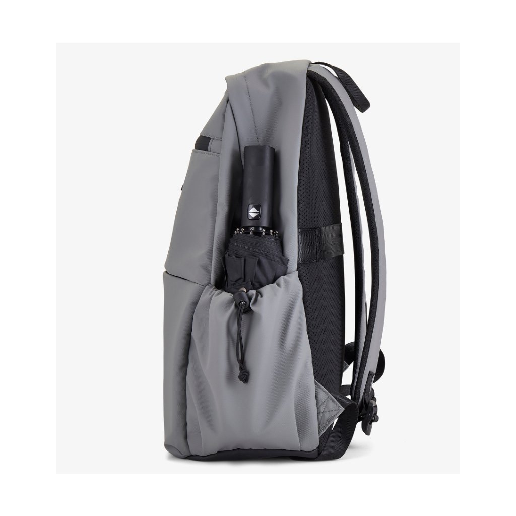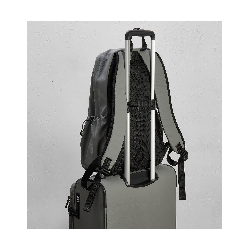 Odolný polyester TPU vyniká mechanickou pevnosťou, odolnosťou proti oderu a chemickému opotrebovaniu a zároveň ponúka vyššiu odolnosť proti prerezaniu a roztrhnutiu ako bežný polyester. Nastaviteľné polstrované ramenné popruhy a polstrovaný chrbát zabezpečujú pohodlie pri nosení. Praktický popruh na chrbte umožňuje batoh ľahko pripevniť k výsuvnému držadlu kufra, čo oceníte na letisku a pri pohybe po meste.