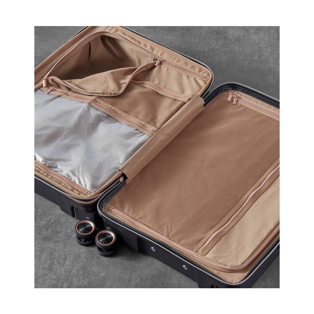 ROCK Astrid Mposkytuje ideálnu rovnováhu medzi veľkosťou, hmotnosťou a odolnosťou. Škrupina vyrobená z polypropylén (PP) spoľahlivo odoláva nárazom, Kódový zámok TSA uľahčiť letiskové kontroly a expandér umožní zvýšiť kapacitu o +10-15 %. Plynulý pohyb zabezpečuje 4 dvojité 360° kolieska, priehľadný vnútorný priestor s priehradkami, vreckami a kompresnými popruhmi urýchľuje balenie a orientáciu počas cestovania.