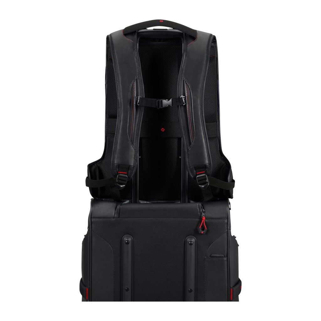 Batoh má polstrovaná priehradka na 17,3" notebook a tablet 10,5". Usporiadaný interiér poskytuje dostatok priestoru na dokumenty, príslušenstvo a osobné veci. Vďaka vodotesná povrchová úpravareflexné prvky a vodotesné zipsy zaisťujú neustálu ochranu obsahu batohu. Ergonomické ramenné popruhy a horná rukoväť zabezpečujú pohodlie pri nosení, zatiaľ čo Inteligentný rukáv umožňuje jednoduché pripevnenie ku kufru počas cestovania.