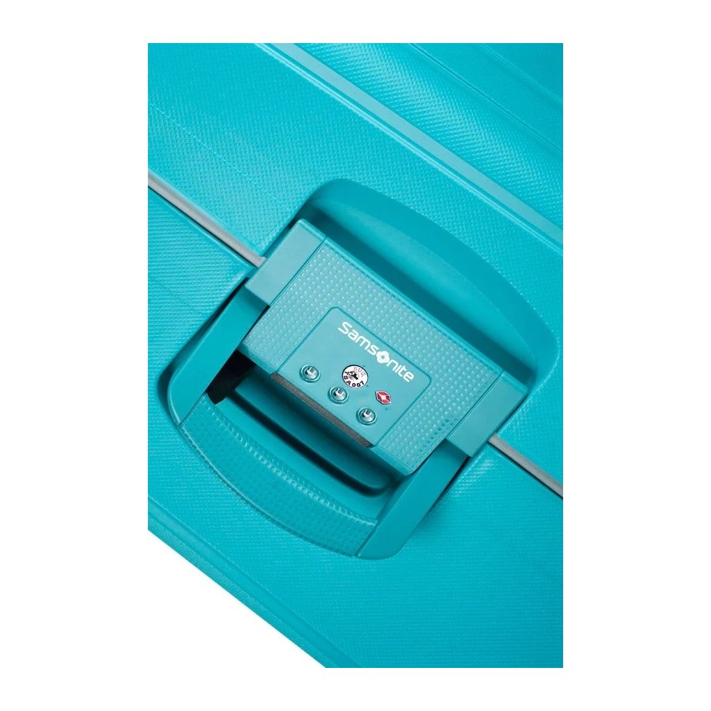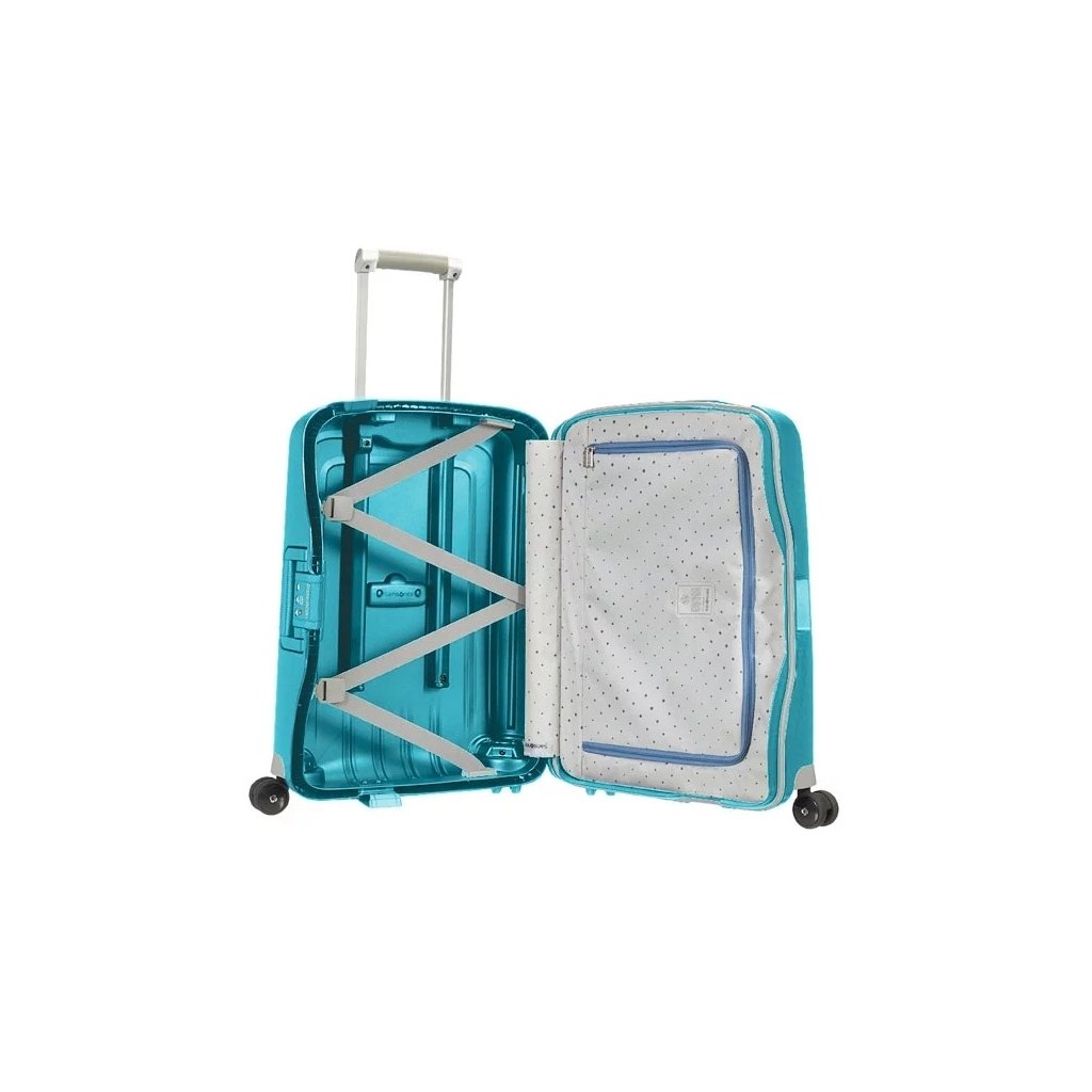 Ľahký škrupinový kufor z kolekcie S ´Cure. Vďaka použitiu špeciálnej technológie výroby nového polypropylénu Flowlite je možné vyrobiť kufor ešte tenší, teda ľahší ale rovnako pevný ako iné kolekcie.