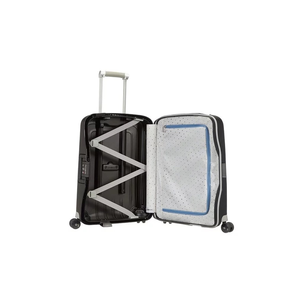 Ľahký škrupinový kufor z kolekcie S ´Cure. Vďaka použitiu špeciálnej technológie výroby nového polypropylénu Flowlite je možné vyrobiť kufor ešte tenší, teda ľahší ale rovnako pevný ako iné kolekcie.