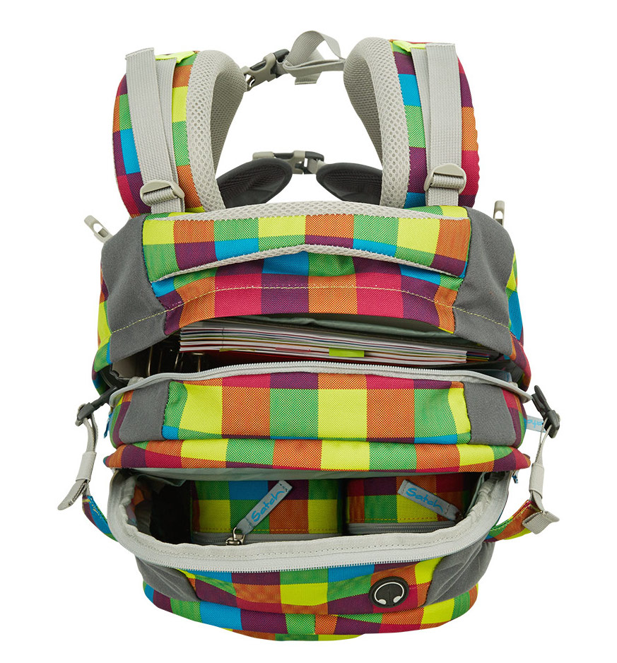 Školský batoh značky Satch, ktorý doslova uľahčuje študentský život. Batoh je určený pre školákov a študentov od 11 do 16 rokov. Batoh je ergonomický, ekologický a premyslený do posledného detailu. Vďaka svojej ergonomickej koncepcii ho možné nastaviť tak, aby zodpovedal výške medzi 1,40 a 1,80 m. Dve ergonomicky tvarované hliníkové koľajnice prispôsobí batoh chrbtu dieťaťa. Nastaviteľný hrudný popruh a bedrový pás tiež zaisťujú pohodlné nosenie a pomáhajú preniesť váhu do oblasti panvy. Po bokoch batohu sú pracky, ktoré stiahnu náklad a tým ho priblíži k chrbtu. Vystužené dno dodáva batohu perfektnú stabilitu. Vnútorné dispozície je premyslená do posledného detailu, takže je veľmi ľahké udržať si v batohu poriadok. Batoh ponúka dve veľké hlavné priehradky, vrátane priehradky na knihy. V prednom vrecku je organizér s dvoma vreckami na zips, pútka na perie a klip na kľúče. Vďaka jasnej podšívke máte vždy dokonalý prehľad o obsahu batohu. S vnútorným vreckom na mobilný telefón s výstupom na slúchadlá a prackami na skateboard na prednom vrecku ponúka Satch všetko, čo deti potrebujú.