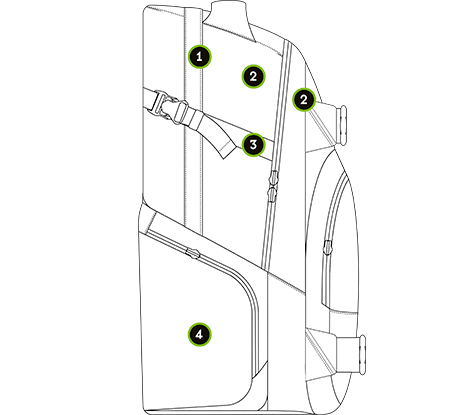- dve bočné vrecká (zatváranie na zips) pre všetko čo potrebujete mať pri ruke alebo napr. pre fľašu na pitie