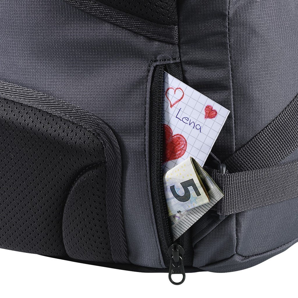 - dve veľké hlavné vrecká poskytujú dostatok miesta pre knihy a zložky až do veľkosti A4, polstrované vrecko pre notebook 15,6''