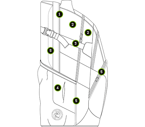 - priedušné polstrovanie chrbta z penového Air Mash materiálu pre komfortné nosenie a pre optimálnu cirkuláciu vzduchu