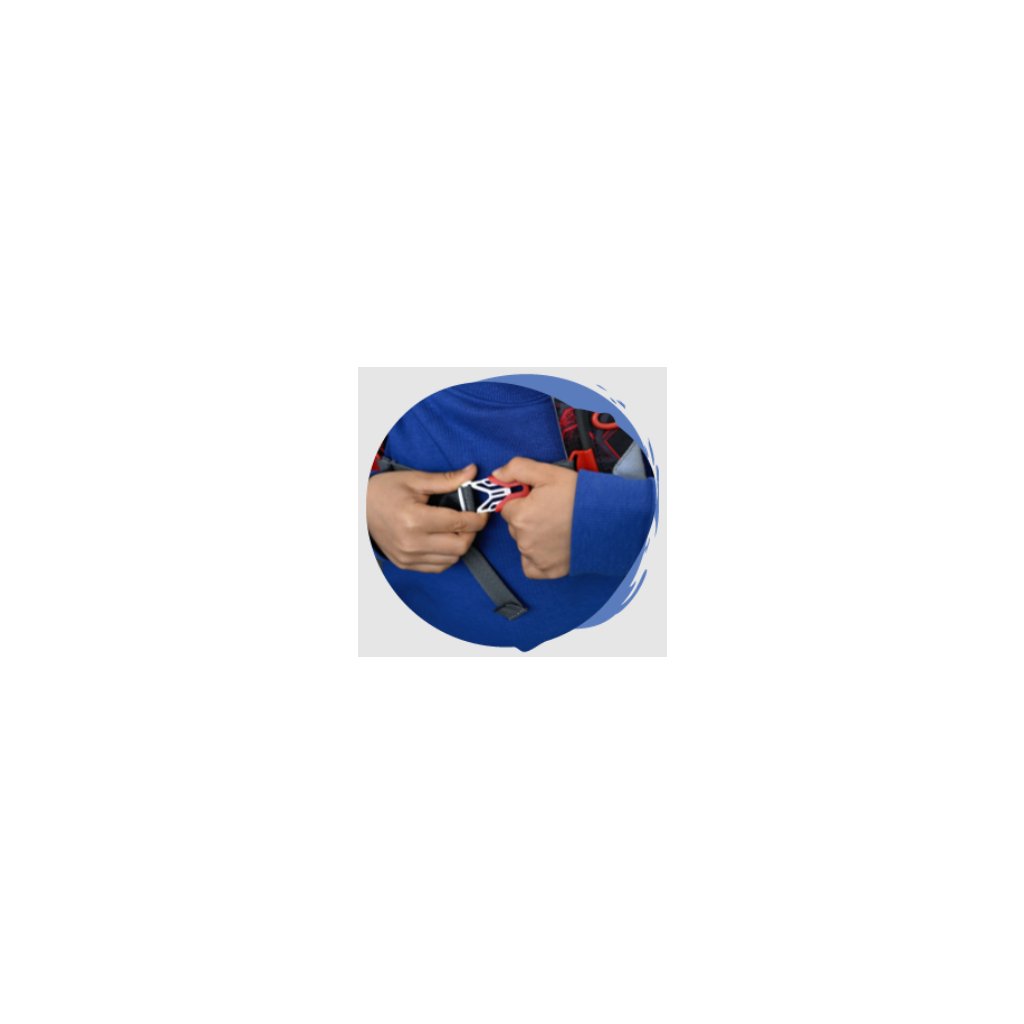 Hrudný pás udržuje popruhy v správnej polohe, opasok pomáha rozložiť hmotnosť a odľahčiť hornú časť tela.