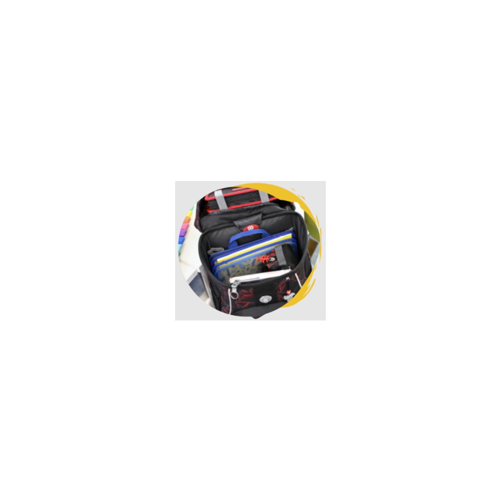 Vďaka dômyselnému usporiadaniu vreciek a priehradiek sú školské pomôcky prehľadne uložené. Dieťa tak rýchlo nájde všetko, čo potrebuje, a ráno sa mu pôjde do školy ľahšie.