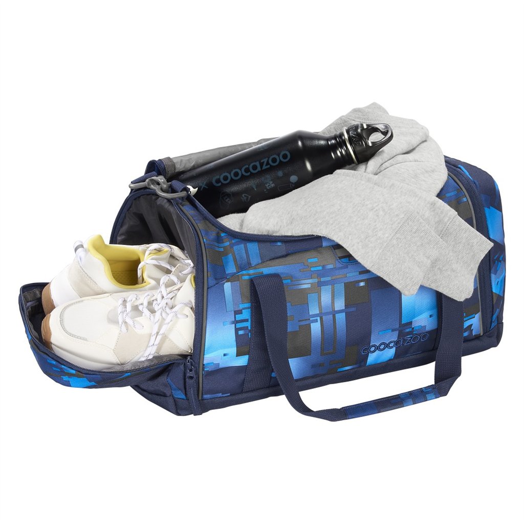 - športová taška s veľkou hlavnou priehradkou na športové vybavenie, ako je oblečenie, obuv, uteráky atď.