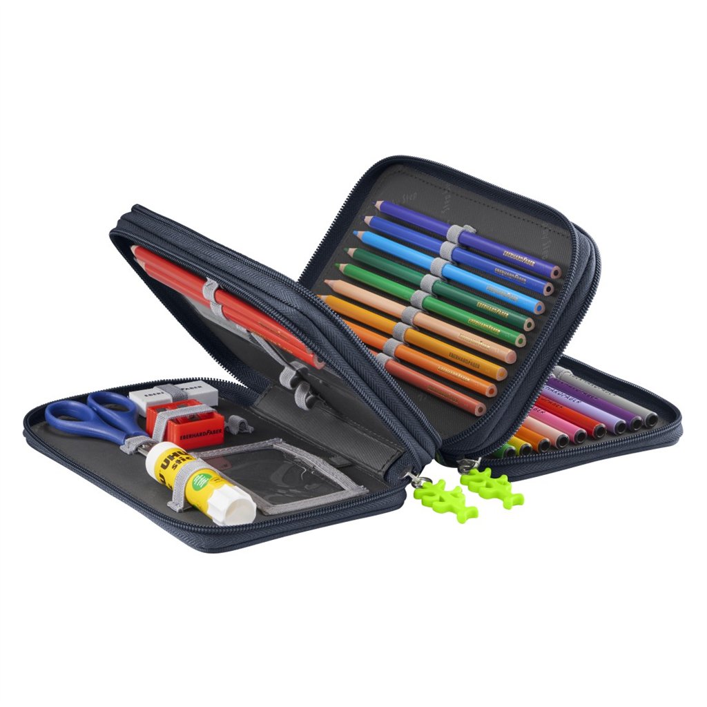 Dobre organizovaná hneď od začiatku: XXL peračník je vybavený všetkým, čo vaše dieťa potrebuje na maľovanie a ručné práce. Farebné ceruzky a fixky, ceruzky, orezávátka a gumy, nožnice a lepidlá, každý nástroj má svoje miesto hneď od začiatku. Celkovo sú tu tri priehradky, každá s vlastným oblúkovým zipsom. Vaše dieťa tak okamžite vie, kde nájde ktoré pero, a nič sa nestratí.