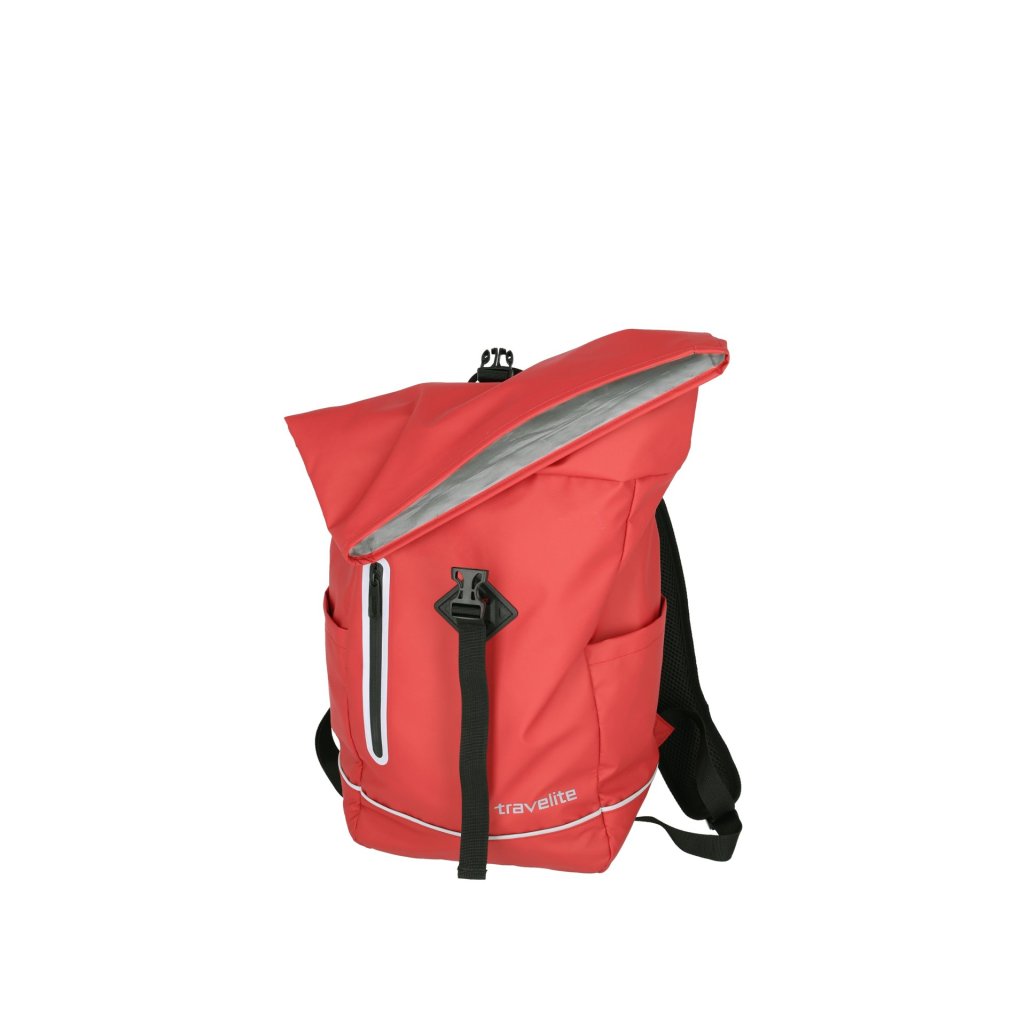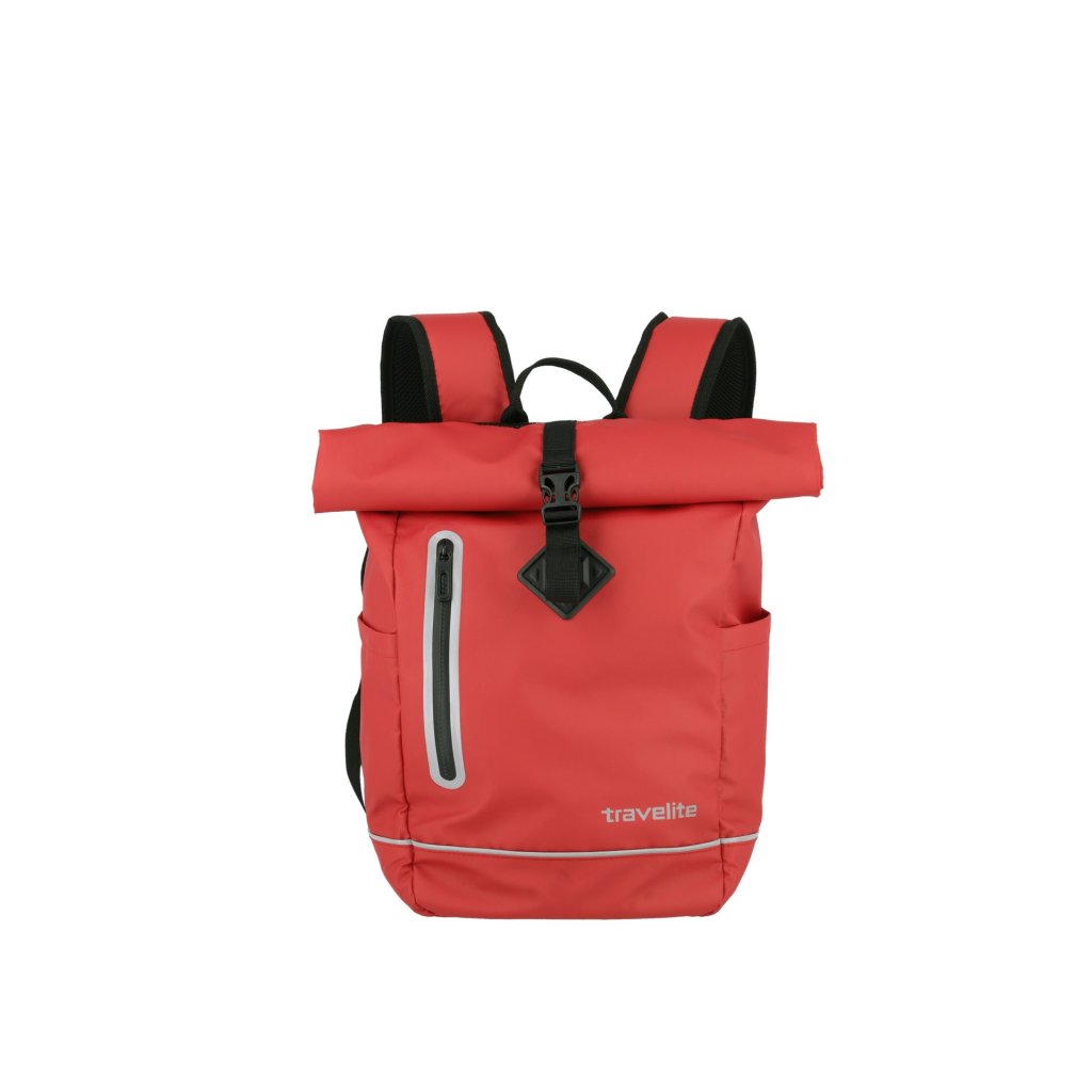 Obľúbený batoh Travelite Basics Roll-up Plane je ako stvorený na cesty do školy, práce, mesta i na výlety na bicykli, skútri či príležitostnú turistiku. Priestranná komora sa flexibilne prispôsobí vašim potrebám, pojme dokumenty, knihy a zložky formátu A4, vo voľnom čase potom športové veci na tréning či kurz. Vydať sa s ním môžete aj na prechádzku po okolí, a to pokojne aj v daždi. O bezpečie vašich vecí sa totiž postará ľahký, pevný a nepremokavý Tarpaulin, na ktorý je spoločne s rolovacím zatváraním aj nepekné počasie krátke. Na ceste budete navyše vždy dobre vidieť vďaka reflexným prvkom, pohodlné nosenie zaistí nastaviteľné a polstrované ramenné popruhy a priedušný chrbtový panel.