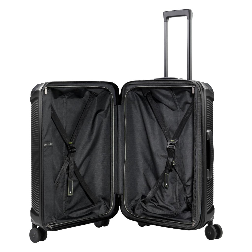 Interiér je řešen oboustranným balicím systémem se dvěma textilními dělicími příčkami na zip, kapsami a kompresními popruhy, které udrží obsah kufru přehledně uspořádaný. Čtyři kvalitní dvoukolečka s kuličkovými ložisky otočná o 360° zajišťují tichý a plynulý pohyb, zatímco výsuvná rukojeť s aretací a horní i boční ergonomické madlo zpříjemní manipulaci.