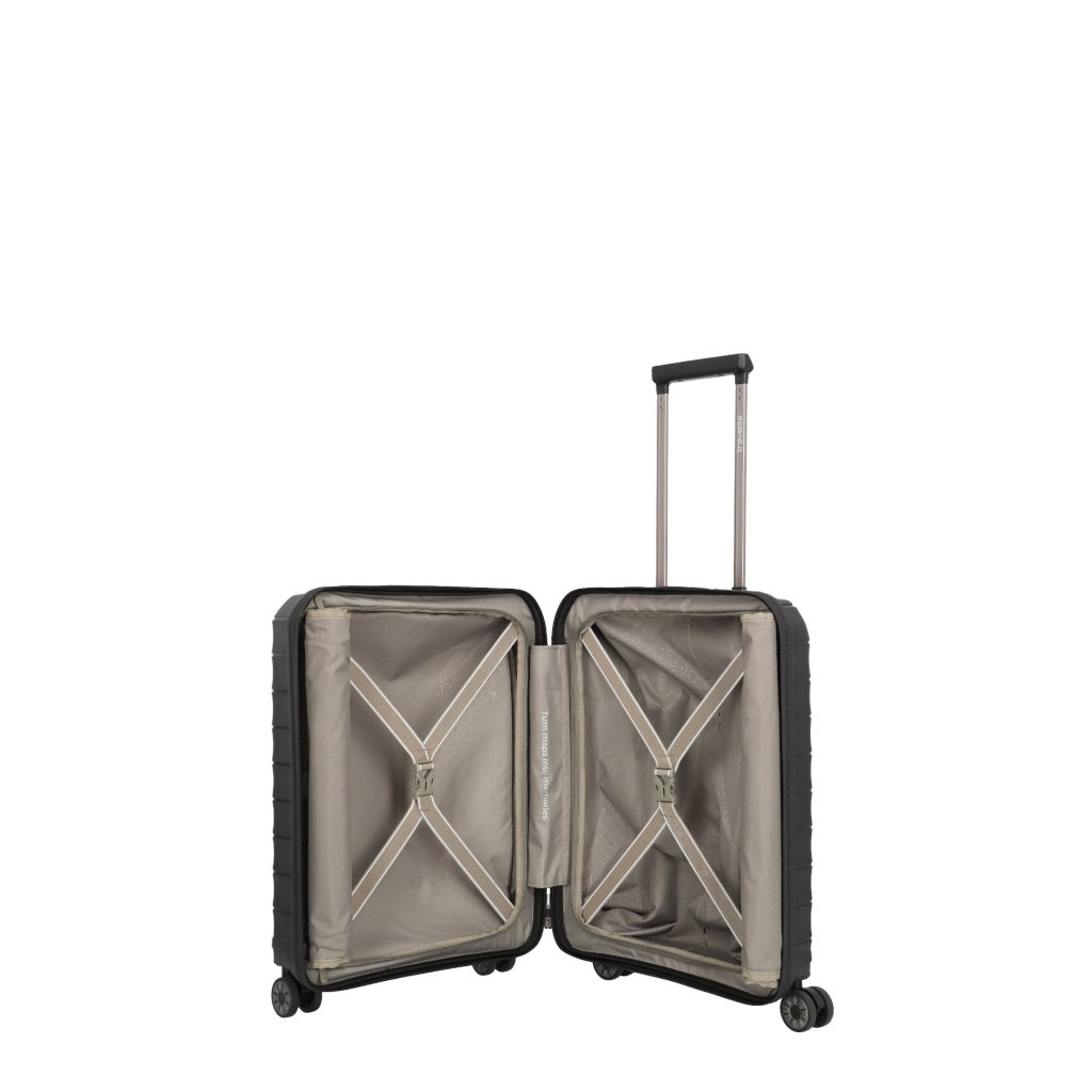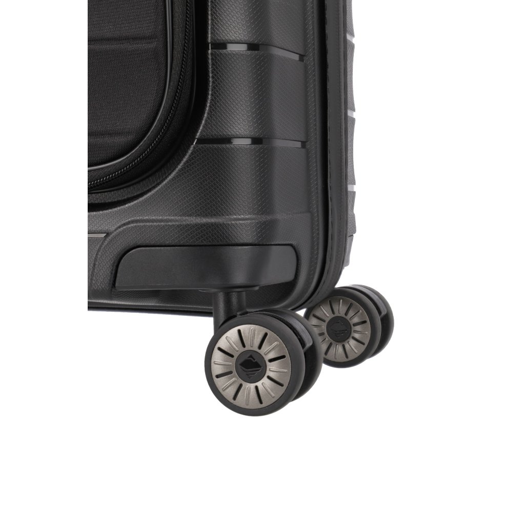 Pružný, textúrovaný plášť minimalizuje viditeľnosť škrabancov a je vyrobený z recyklovaného polypropylénu a obsahuje plast zozbieraný spoločnosťou Ocean Bound Plastic. Mäkká podšívka z recyklovaného polyesteru, baliace popruhy, textilné rozdeľovače a vnútorné vrecká zabezpečujú dokonalú organizáciu. Kufor S ponúka aj výklopné predné vrecko na notebook do veľkosti 15,6".
