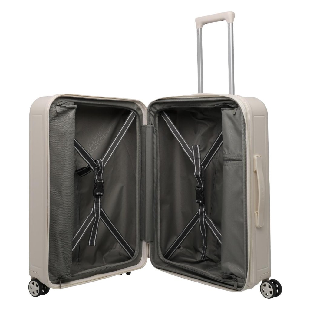 Odolná skořepina z ABS plastu chrání vaše věci před nárazy a tlakem, zatímco integrovaný expandér umožňuje rychlé navýšení objemu při cestách zpět. Bezpečné cestování zajišťuje TSA zámek a pohodlnou manipulaci čtyři dvojitá kolečka otočná o 360°.