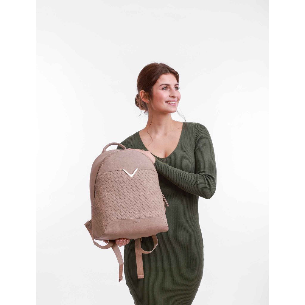 VUCH Meda je štýlový batoh pre ženy, ktoré chcú spojiť pohodlie s eleganciou. Tento väčší model z kolekcie Tvar diamantu ponúka dostatok priestoru na všetko dôležité - vrátane notebook do veľkosti 11,6" béžová farba a jemný geometrický vzor podčiarkujú jeho decentný a moderný vzhľad.
